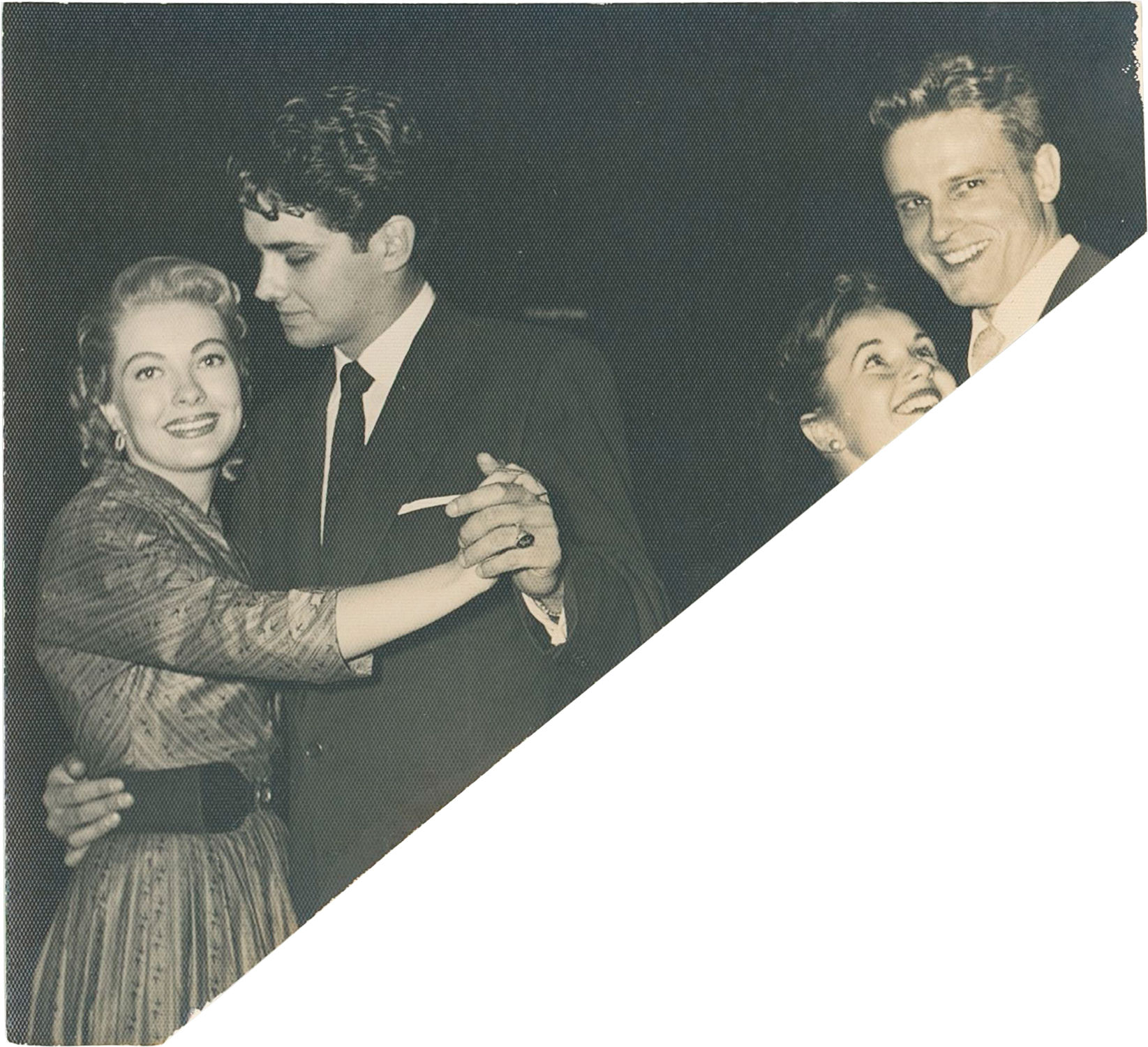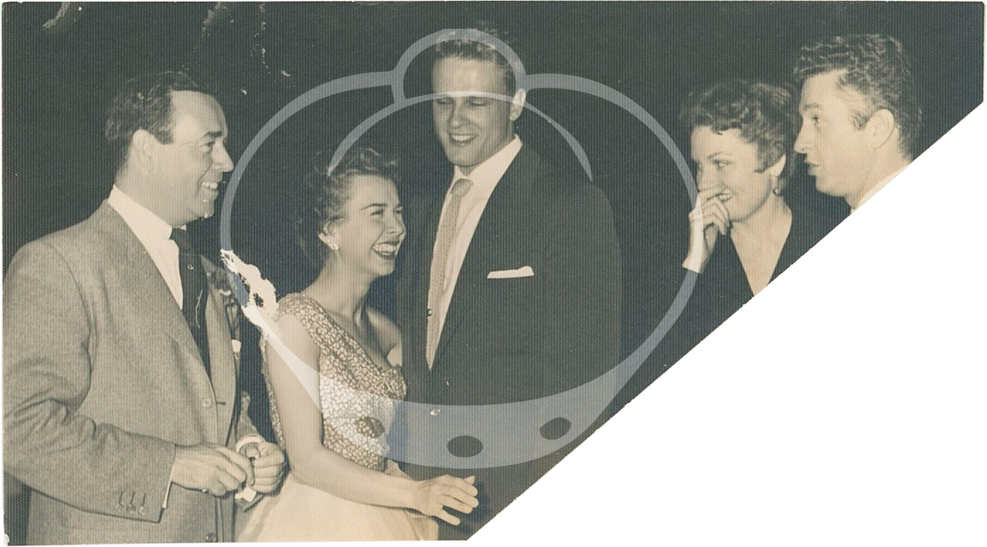 N.p.: N.p., 1950. Four vintage borderless press photographs, all irregularly trimmed for publication, of actress Piper Laurie and four other unknown people at an event, circa 1950s.
