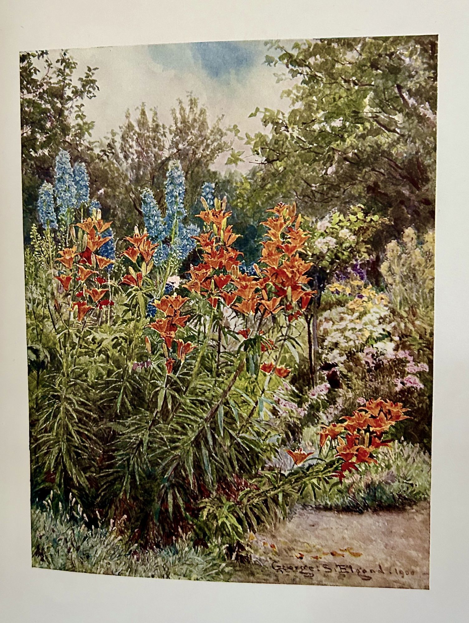 London: Longman's Green, 1904. First edition. Hardcover. Orig. navy cloth, spine and front cover lettered in gilt. Teg. Very good. 131 pages. 34 x 24 cm, fifty full-page colored plates. Scarce and very collectable work by the doyen of English landscape architecture. Gertrude Jekyll concentrated her design work on applying plants in a variety of settings, woodland gardens, water gardens and herbaceous borders always striving to achieve the most natural effect. Slight rubbing to backstrip extremities.