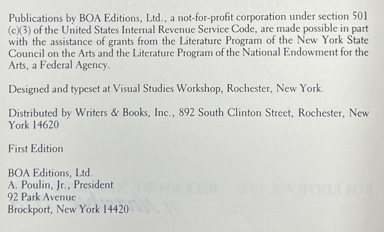 New York: Boa Editions, Ltd, 1984. First Edition. Hardcover. Near Fine/Near Fine. Inscribed by Kizer on the title page. Near Fine in a Near Fine later-issue jacket, unclipped (no price), rubbed and bumped at the edges, a few short closed tears. White cloth, bumped at the head and foot of the spine, black ink illustration on the front board with red gilt lettering on the spine and front board. Square and firmly bound, remaindered at the bottom edge, clean otherwise. Kizer's Pulitzer Prize-winning poetry collection published as part of Boa's American Poets Continuum Series.