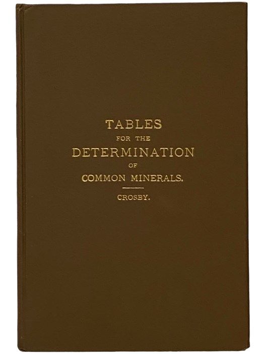 Boston, Massachusetts: W.O. Crosby, 1903. Fourth Edition. Hard Cover. Near Fine/No Jacket. 0x0x0. Fourth edition. No jacket. Ink name on front endpaper. Fold-out tables laid-in. 1903 Hard Cover. 106 pp. The chief distinctive feature of this edition of the Tables is the placing of the important properties of streak, hardness, and specific gravity on a more satisfactory and definite basis by suitable provision for their more ready and accurate determination, and the addition of the Supplementary Tables, embracing one hundred of the less common minerals.