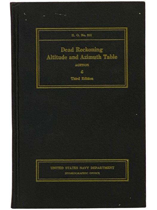 Washington, D.C: United States Government Printing Office, 1943. Third Edition. Hard Cover. Near Fine/No Jacket. 9x5x0. Third edition. Pencil name and ink stamp. 1943 Hard Cover. 49, [8] pp. Tabbed degrees. Altitude: the angular distance of a celestial body above or below the horizon, measured along the great circle passing through the body and the zenith. Altitude is 90° minus the zenith distance. Azimuth: the angular distance measured eastward along the horizon from a specified reference point (usually north). Azimuth is measured to the point where the great circle determining the altitude of an object meets the horizon.