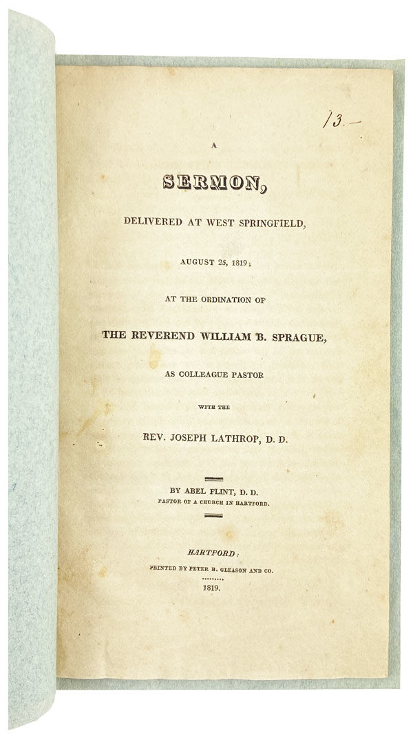 Hartford: Peter B. Gleason & Co, 1819. Very Good. Hartford: Peter B. Gleason and Co. 1819. First Edition. Octavo; modern blue wrappers; 31,[1]pp. (collated complete). Very faint foxing to title page, textblock a shade darkened, else Very Good and sound.
