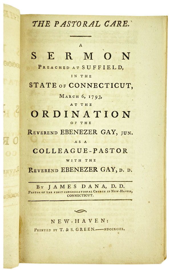The Pastoral Care. A Sermon Preached at Suffield, in the State of Connecticut, March 6, 1793, at the Ordination of the Reverend Ebenezer Gay, Jun. as a Colleague-Pastor with the Reverend Ebenezer Gay, D.D. [Half title: Doctor Dana's Sermon at the Ordination of the Reverend Ebenezer Gay, Jun.]