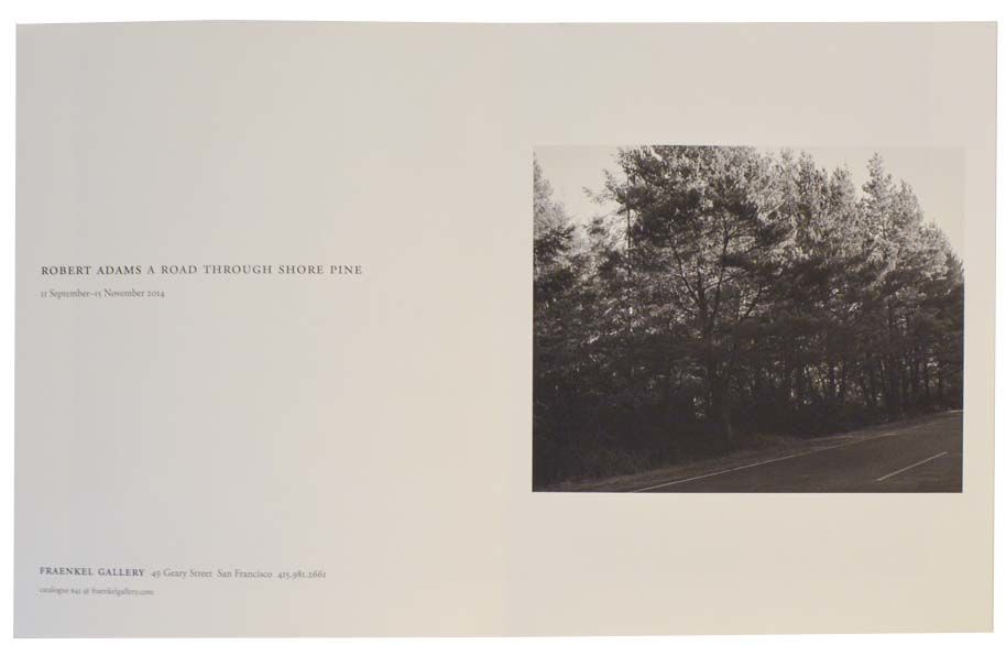 San Francisco, CA: Fraenkel Gallery, 2014. First edition. Exhibition brochure/ poster for a show that ran September 11 through November 15, 2016. Single stiff sheet folded twice and measures 16" wide by 20" high when fully open. Includes 3 black and white images. A fine copy and with a laid in additional brochure for the complete books of Robert Adams. Uncommon ephemera.