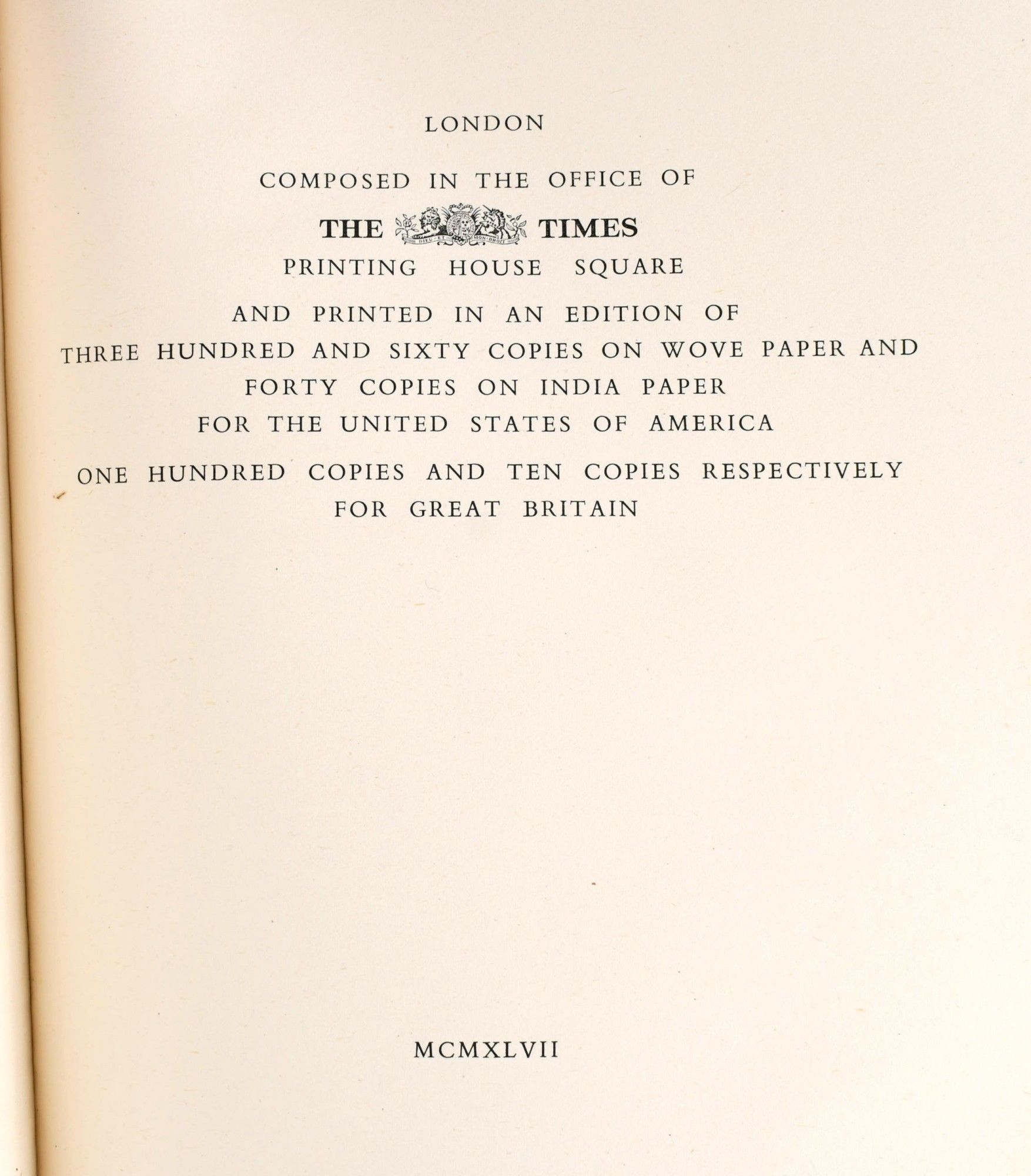 Cambridge; Chicago: Harvard College Library; The Newbery Library, 1947. Limited Edition. Hard Cover. Fine binding. Quarto; in the publisher's grey cloth with titling lettered in gilt to the spine; ix, 3, [32] pages, followed by the colophon; in the publisher's glassine wrapper and moderately worn black slipcase; there is a very slight musty odor.~~From the colophon: "Printed in an edition of three hundred and sixty copies on wove paper and forty copies on India paper for the United States of America.". Fine binding.