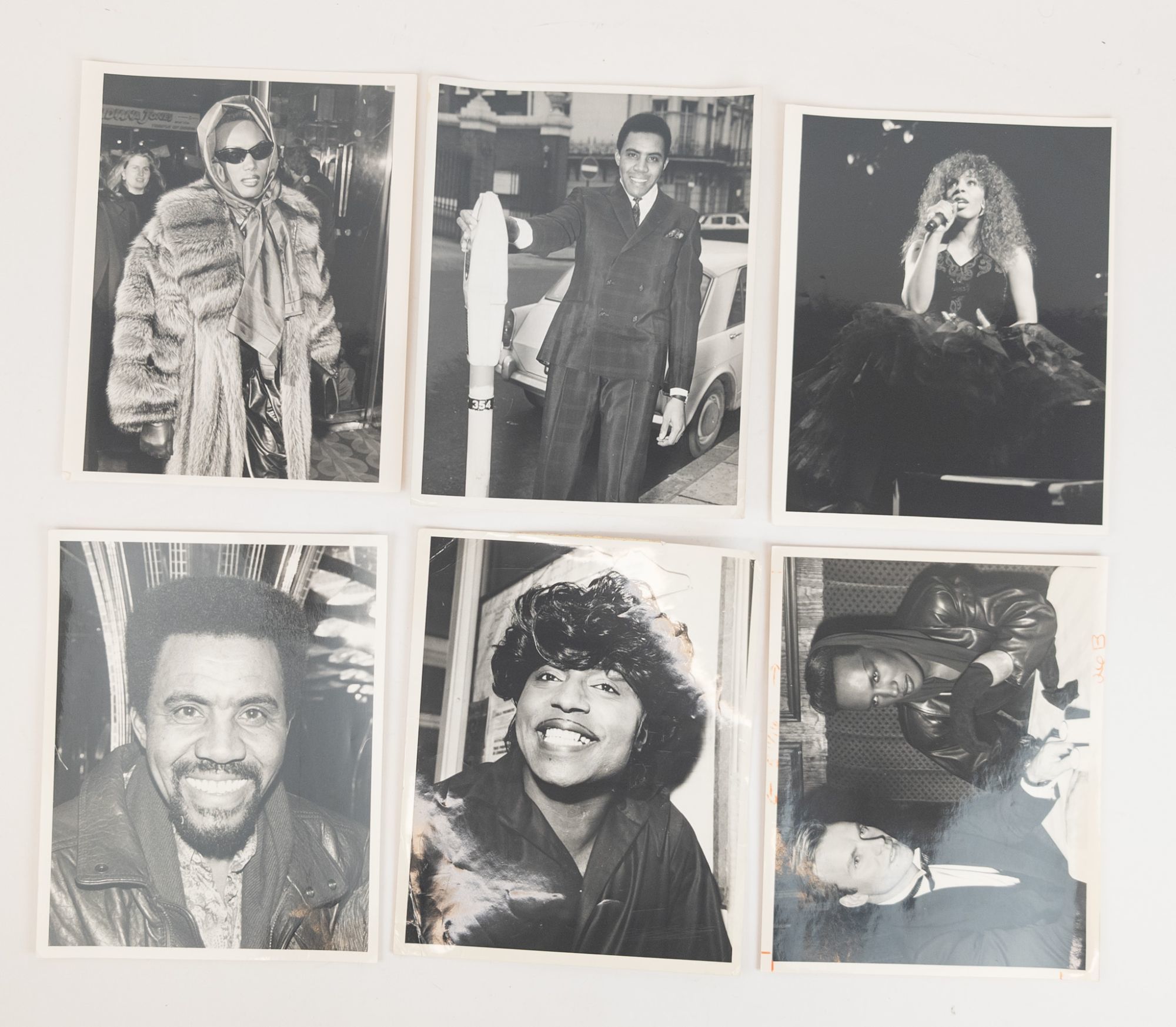 ENTERTAINMENT PRESS PHOTOGRAPH LOT (x59) FEATURING GLADYS KNIGHT, SAMMY DAVIS JR., THE SUPREMES, SIDNEY POITIER, ARETHA FRANKLIN AND MORE