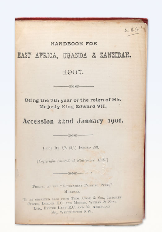 Handbook for East Africa, Uganda & Zanzibar 1907. Being the 7th Year of the Reign of His majesty King Edward VII. Accession 22nd January, 1901
