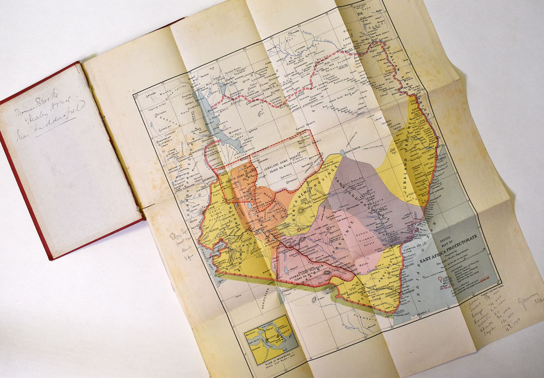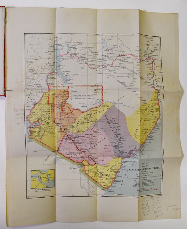 - 3[4], 00, [1[], iii, [i], xx, ads.pp. Folding colored Sketch map of The East Africa Protectorate bound in at front. 8vo