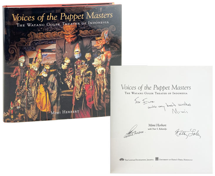 Honolulu: University of Hawai'i Press / The Lontar Foundation, 2002. Very Good +/Very Good +. Honolulu: University of Hawai'i Press / The Lontar Foundation, 2002. First Edition. Signed by Herbert at title page with brief inscription to previous owner; two additional signatures, presumably from unlisted contributors. Quarto. 251, [1] pp. Color photographs and illustrations throughout. Photo-illustrated dust jacket. Red-orange boards stamped in gilt; illustrated endpapers. Dust jacket rubbed and wrinkled along edges with some mild surface scratching. Boards lightly shelfworn. Binding gives a little but overall sound; interior unmarked. A Very Good or better copy.