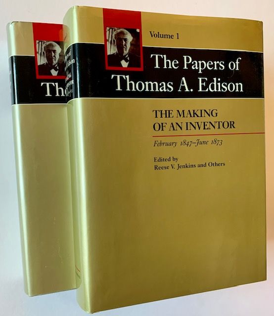 Baltimore, MD: The Johns Hopkins University Press, 1989. Cloth. Fine/Fine. The first 2 volumes of this exhaustive 8-volume set. Both volumes clean and Fine in crisp, Fine dustjackets. Thick quartos, including dozens and dozens of Edison's own illustrations. Vol. 1: The Making of an Inventor: February 1847 - June 1873; Vol. 2: From Workshop to Laboratory: June 1873 - March 1876.