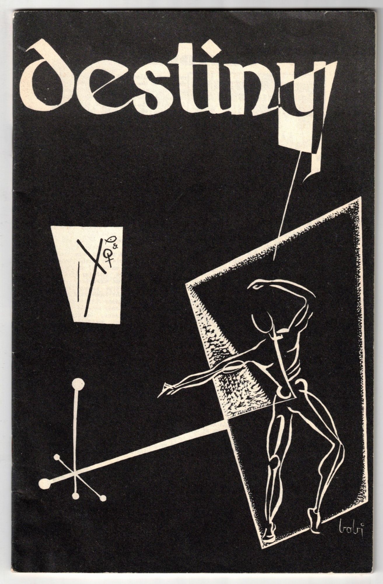 Malcolm Willits and Earl Kemp, 1954. Original edition. Very Good. 31pp. Very slim octavo [21.5 cm] Saddle-stitched wraps with a cover illustration by Robert Johnson. Very minor stain to bottom edge of rear wrap. "Destiny" is an amateur copyrighted magazine published on a non-profit basis.