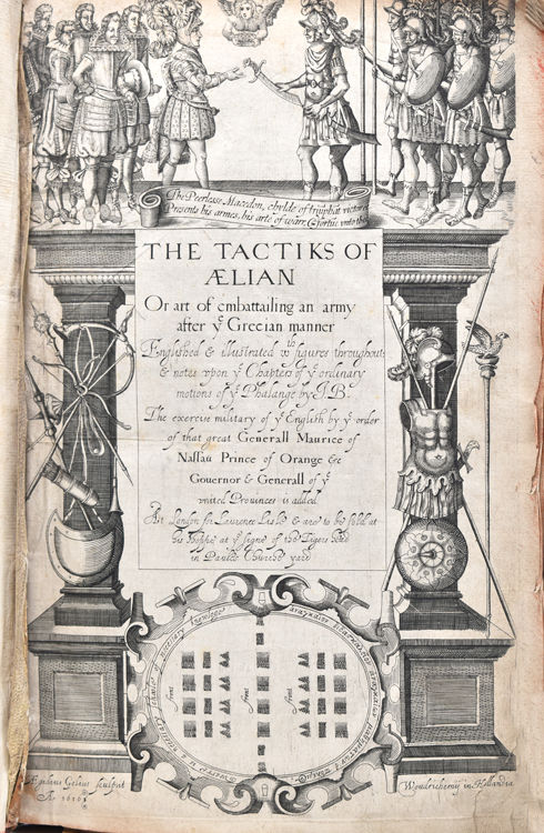The Tactiks of Aelian or Art of Embattailing an Army After Ye Grecian Manner. Englished and Illustrated with Figures Throughout: and Notes upon Ye Chapters of Ye Ordinary Motions of Ye Phalange. [Translator’s dedication signed: Io: Bingham.]