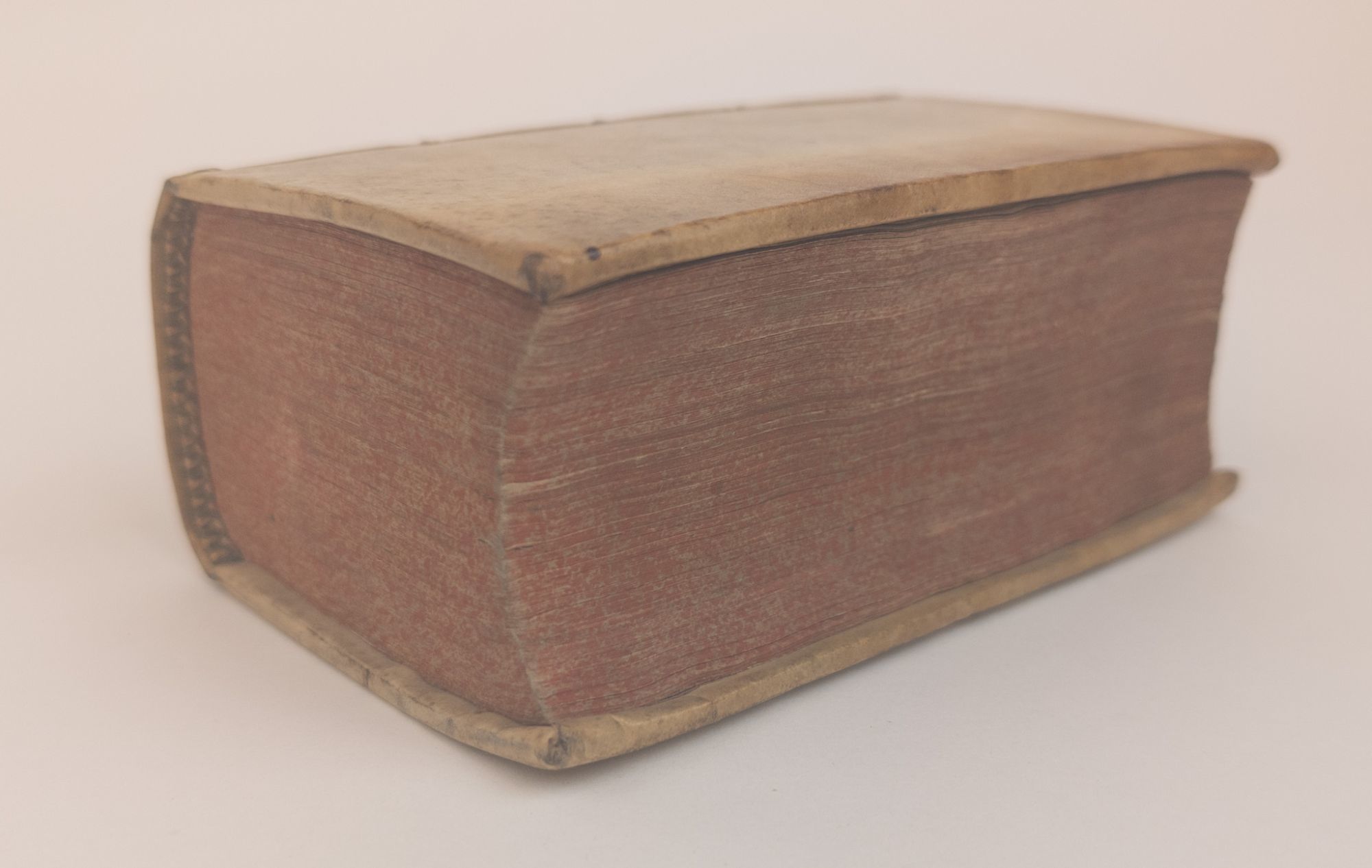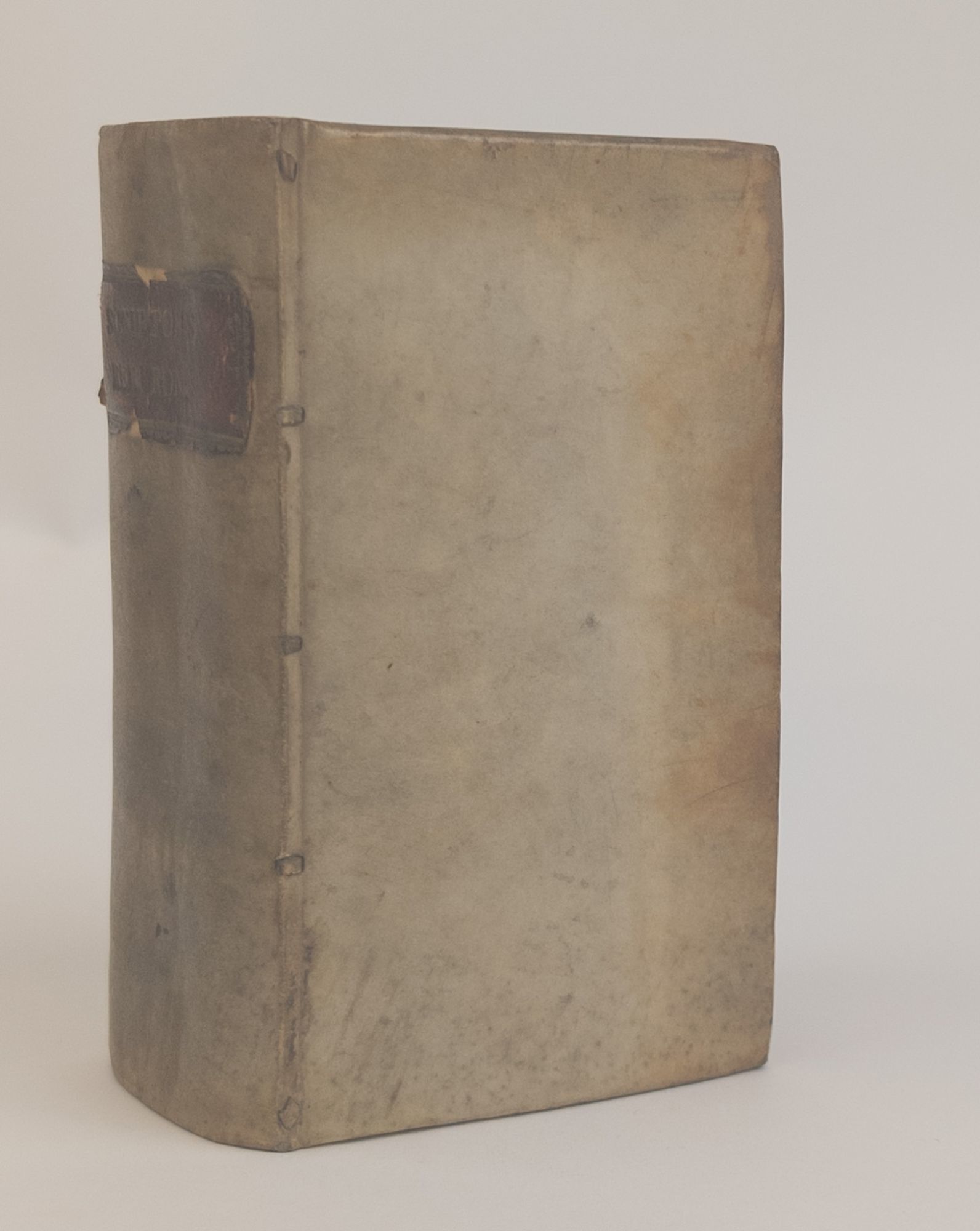 Lugduni Batavorum [Leiden]: Ex officina Ioannis Maire, 1632. First Edition. Hardcover. 12mo, [24], 932 pages. In Very Good minus condition. Bound in full early vellum with red leather label to spine bearing gilt titling, somewhat chipped and worn. Vellum yellowed with age and lightly marked, as is usual. Corners lightly bumped and rear board with light vertical crease at center. Text block with red speckled edges and light plus age toning. Pencil annotations to front free endpaper. Damp staining to front hinge not visible elsewhere in volume. With engraved title page. Shelved in Room G. 1380044. Special Collections.