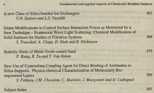 UK: Royal Society of Chemistry, 1999. Hard Cover. Fine/No Jacket - Pictorial Cover. 6x1x9. An exceptional copy. 1999 Hard Cover. x, 399 pp. "The field of chemically modified particle surfaces has seen many significant developments in recent years. Fundamental and Applied Aspects of Chemically Modified Surfaces covers the latest analytical and synthetic techniques for the development and understanding of these surfaces. Encompassing subjects including self-assembled monolayers, scanning probe microscopies, combinatorial synthetic techniques, plasma polymerizations and molecular modelling of modified surfaces, the book provides a unique snap-shot of state-of-the-art concepts and tools. Documenting the most recent research in an interdisciplinary subject, this book will be welcomed by chemists, materials scientists, engineers and physicists in both academia and industry.