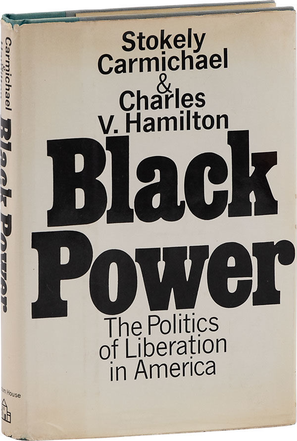 New York: Random House, 1967. First Edition. First Printing. Octavo (21.5cm); bluish-grey paper-covered boards and turquoise cloth backstrip, with titles stamped in gilt on spine, and authors initials embossed onto front cover; light blue topstain; dustjacket; [4],xvi,198,[6]pp. Topstain faded, with a faint, tiny splash mark to heel; contents fresh; Near Fine. Dustjacket is unclipped (priced $4.95), showing light wear and a hint of sunning to extremities, with a few tiny nicks and tears, and a faint, corresponding splash mark to base of spine; Very Good+. A major work by Carmichael and Hamilton, first published by Random House in 1967, delineating the political framework and ideology of Black Power, which they felt represented "the last reasonable opportunity for this society to work out its racial problems short of prolonged guerrilla warfare. That such violent warfare may be unavoidable is not herein denied. But if there is the slightest chance to avoid it, the politics of Black Power as described in this book is seen as the only viable hope" (from rear wrapper). Contents include examinations of White power structures, chapters on the need and substance for Black Power, myths of coalition, Mississippi Freedom Democrats, Black-Belt elections, the politics of deference, and problems and unrest within the nation's ghettos. BLOCKSON 2415.
