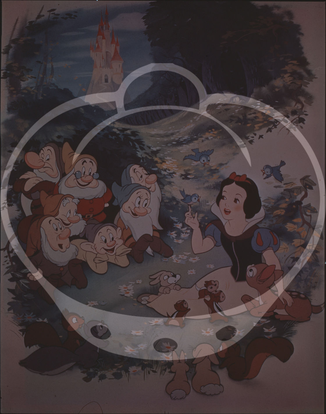 N.p.: N.p., 1967. Three vintage large format negatives, showing Walt Disney, a cel from "Snow White and the Seven Dwarfs" (1937), and a cel from "The Jungle Book" (1967) respectively.