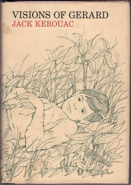 New York: Farrar, Straus and Company, 1963. First edition. Hardcover. Very Good +/Very Good. 151pp. Octavo [20.5cm]. 1/4 black cloth over illustrated boards. Title stamped in gilt on spine. Slight fading towards extremities. Head of spine gently bumped. In a mildly toned dust jacket with a few spots of light soiling, and a handful of short, closed tears along top edge. A semi-autobiographical novel told from the imagined perspective of Gerard Kerouac, Jack's older brother who died of rheumatic fever at the age of nine.