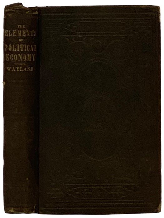 Boston: Gould & Lincoln, 1858. Reissue. Hard Cover. Good/No Jacket. 1858 reprint of the work originally printed in 1837. Edges rubbed with minor loss along spine, front free endpaper removed, minor ink note on rear endpaper. xii, 406, [26] pp. 8vo. A 19th century work of economics discussing production, capital, labor, the use of tools and technology to increase efficiency, commercial legislation, bartering and trade, currency (both coins and paper), banks, wages, interest rates, land ownership and rent, consumption, taxation, and civil government.