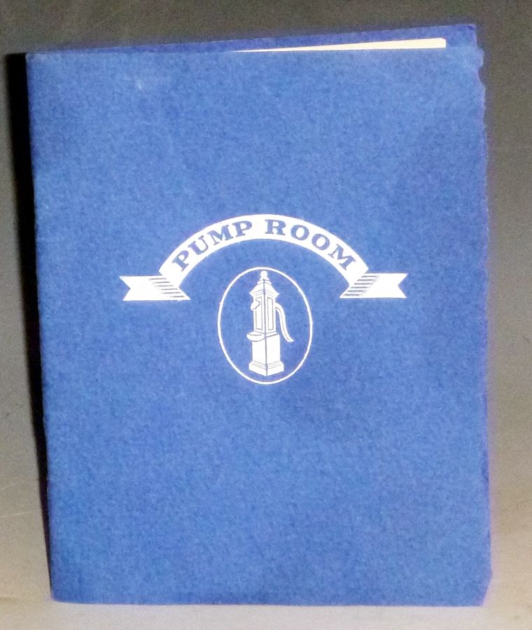 Chicago (nd. ca. 1949): The Ambassador Hotels. 12mo. 14 unnumbered pages. Introduction by Ernest Byfield. The elegance and flamboyance of the Pump Room was legendary. Here is an introduction and with the list of The lobby of the hotel, including the entrance to The Pump Room, is seen in Alfred Hitchcock's 1959 North by Northwest. Besides Frank Sinatra and Judy Garland who ad-libbed about "The Pump Room", many others were still attending in the early 2000's such as Maya Angelou, Bob Dylan, and Micky Dolenz makes reference to "the elegant Pump Room...high over Chicago" against a background of drunken patter, clinking glasses and lounge piano. At the end of the guide, there is a list of over 100 celebrities ranging from Cary Grant, John Barrymore, Jack Benny, Maureen O'Hara and John Steinbeck who were famous guests. Strangely the list does not include Humphry Bogart or Lauren Becall both of whom flew to Chicago to attend his funeral in 1950. Stamp from Jimmy Starr, Hollywood columnist and screen writer. Staple bound in blue paper wraps stamped in silver. A fine copy.