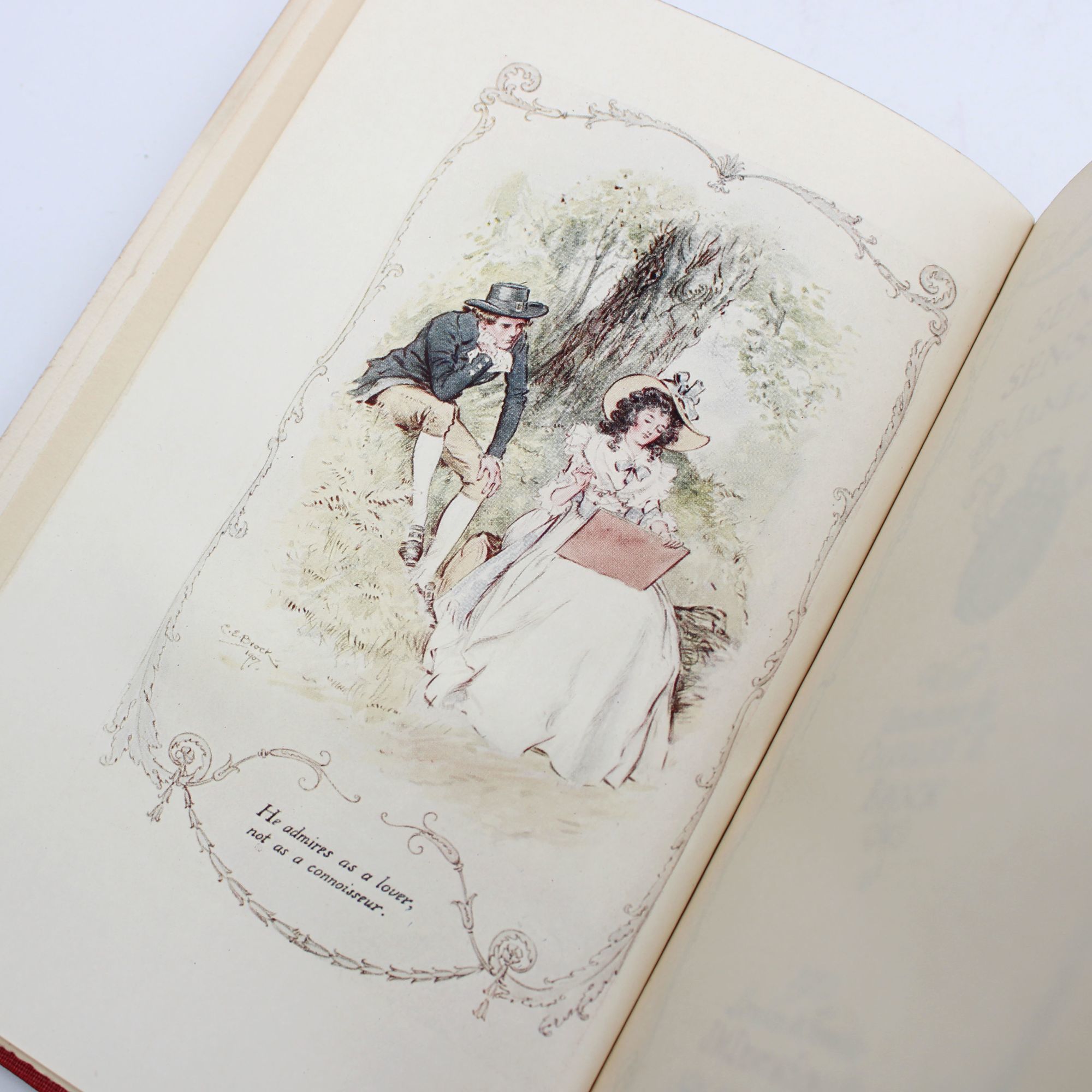 London: J. M. Dent & Sons, 1922. Color Illustrations by Charles E Brock. 6 vols. 8vo. Red three quarter calf with red cloth boards, gilt compartmentalized spine with raised bands, teg. Fading to spine, some water marks to edges, internally near fine. Color Illustrations by Charles E Brock. 6 vols. 8vo.