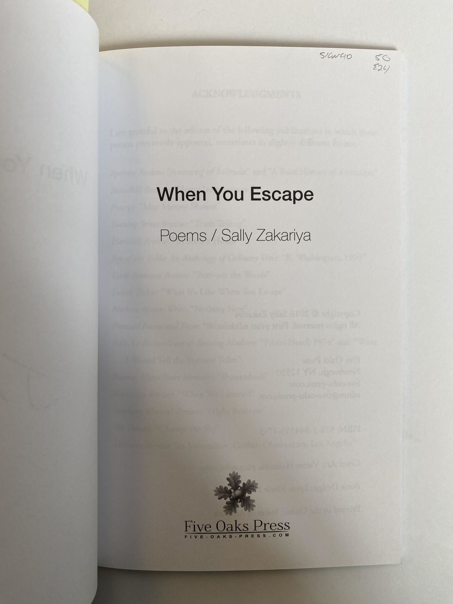 WHEN YOU ESCAPE [Inscribed]