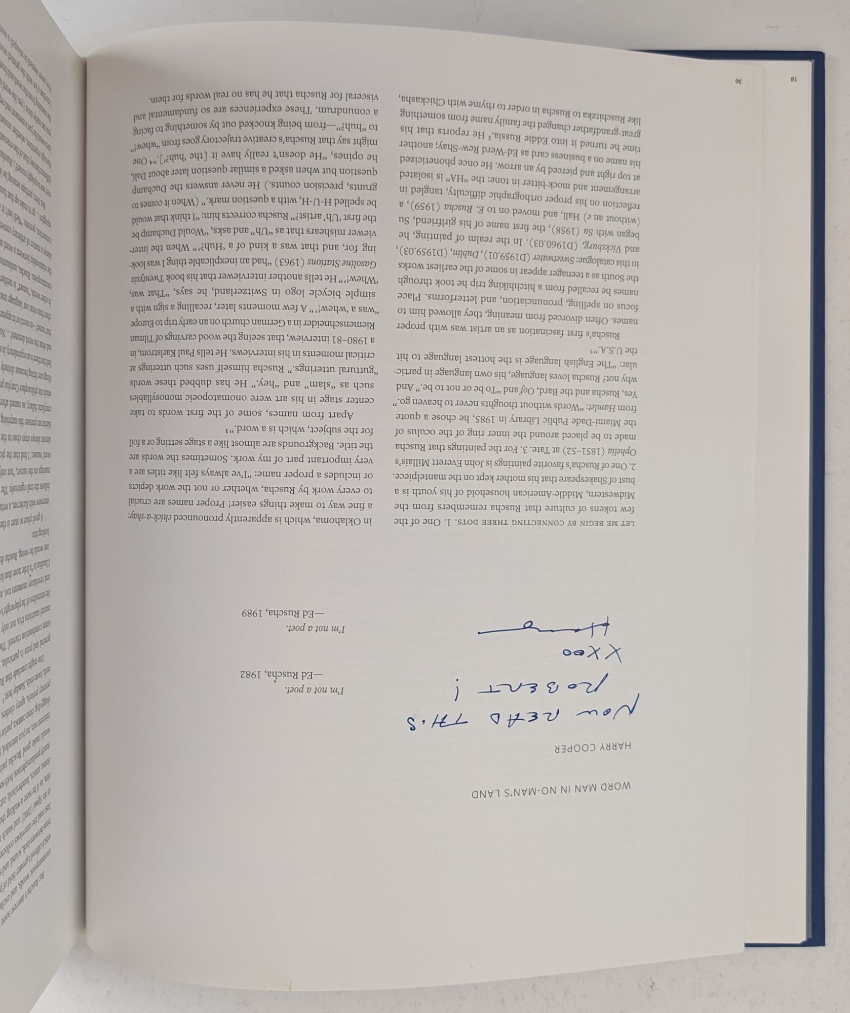 New Haven: Gagosian Gallery, 2014. First Edition. Hardcover. Quarto, 450 pages. In Very Good minus condition. Half bound in cream cloth with blue paper boards and black lettering on spine. Boards have faint brown stain on front cover and sticker on rear cover. Textblock clean. Inscribed by essay author Harry Cooper on page 36. Shelved Room A. 1380397. Special Collections.