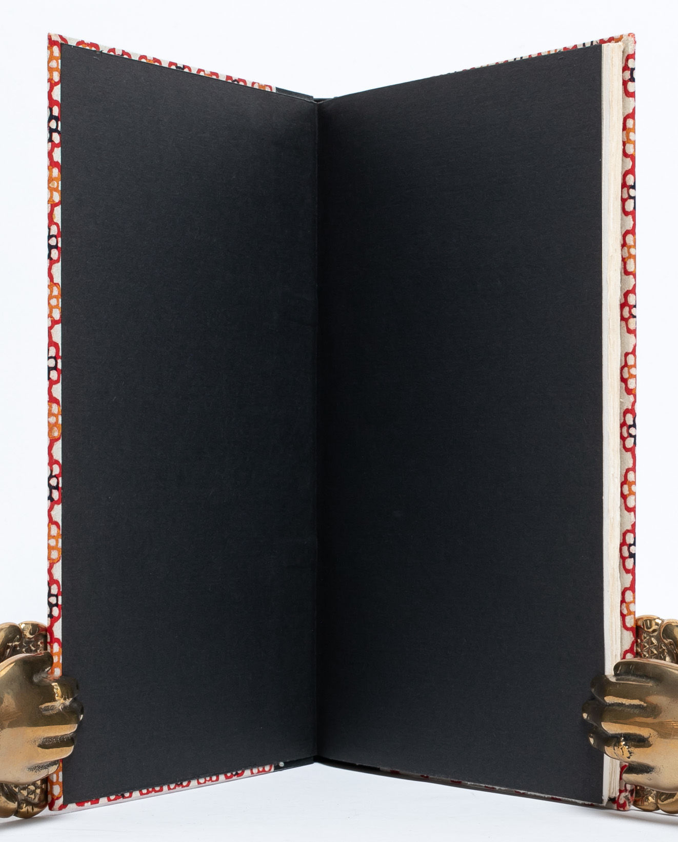 Northridge: Lord John Press, 1984. Limited edition. Fine. Presentation copy, outside of limited numbered 150 signed and 50 signed and specially bound copies. A Fine copy, bound in paper boards with red, black, and yellow floral-patterned paper and black cloth backstrip, and maintaining paper title to spine. Extremely minor wear to corners of boards and slight toning to black fabric on spine. Interior exceptionally bright and clean with printed illustrations designed by the author.