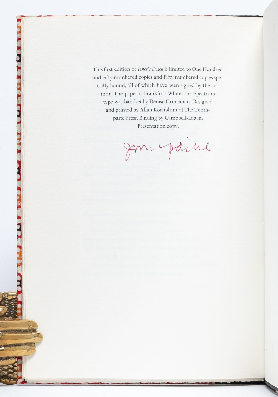 A lovely collection of twelve poems by Pulitzer prize winning author and critic, John Updike. "His poetry, starting as light verse, encompasses a variety of forms and topics. His poetry was praised for his wit and precision, and for his ability to focus on common subjects and on places near and distant—from Shillington, Pennsylvania (the town of his childhood), to Venice, Italy." (Poetry Foundation). Fine.