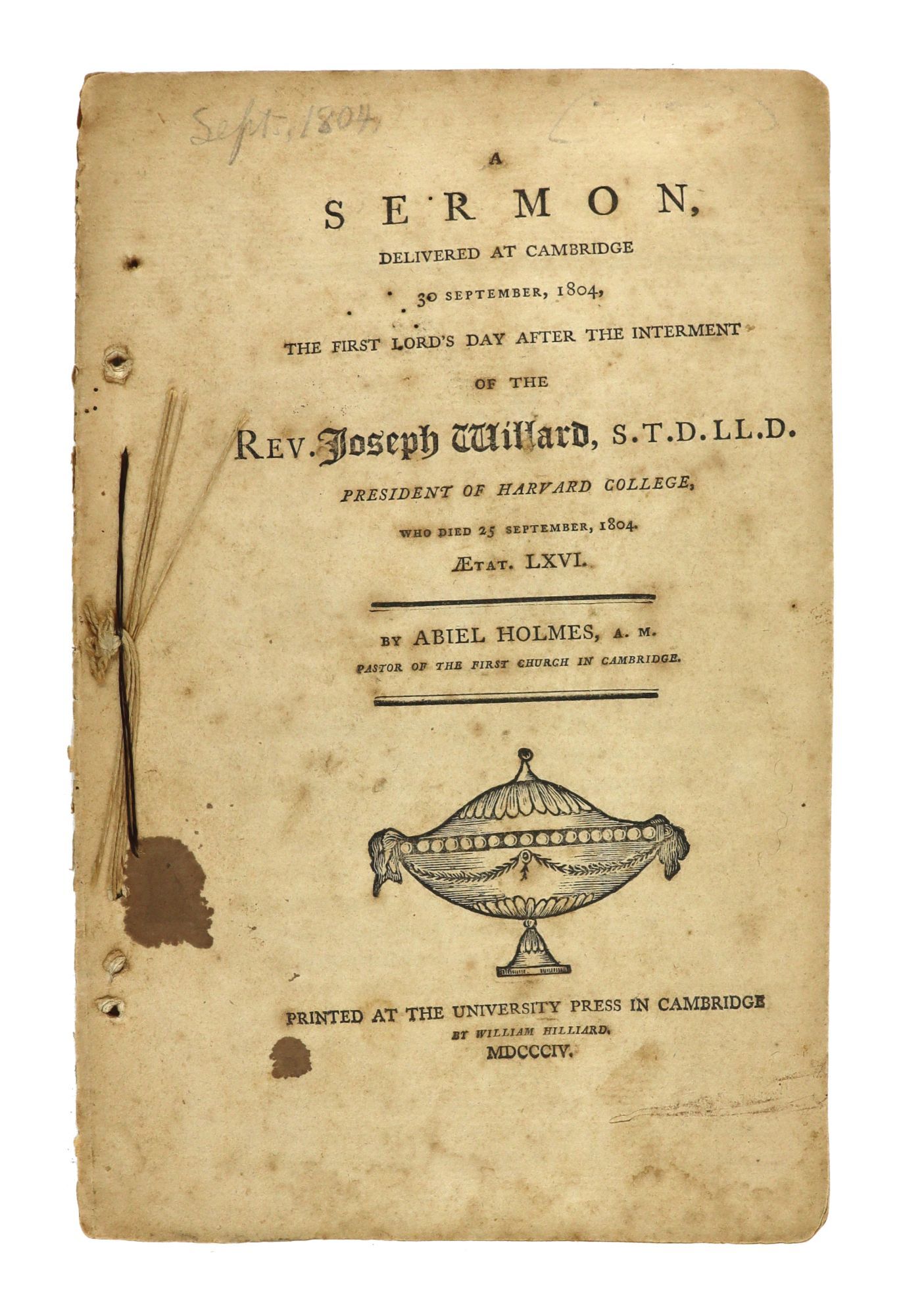 A Sermon Delivered at Cambridge 30 September, 1804, the First Lord’s Day after the Interment of the Rev. Joseph Willard, S.T.D. Ll.D. President of Harvard College, Who Died 25 September, 1804. AEtat. LXVI