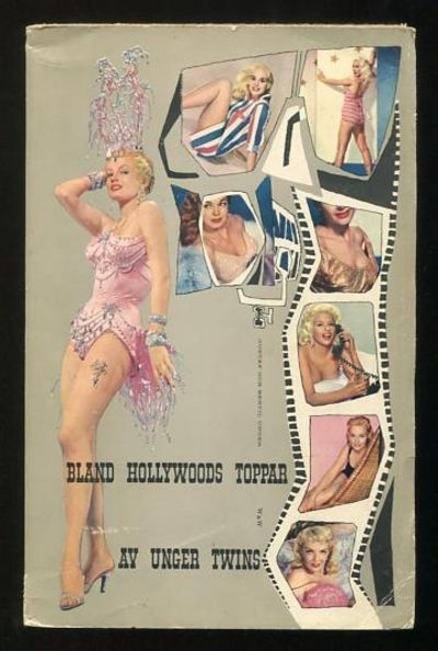 Stockholm: Wahlström & Widstrand. Very Good+. 1958. 1st Edition (softcover issue). Softcover. [modest wear to extremities, short diagonal creasing to bottom right corner of front cover and the front endpaper]. Trade PB (B&W photographs) INSCRIBED (in English) and SIGNED by Gustaf Unger: "To ____ / with sincere thanks for / your constant interest and aid / in my efforts, from your friend / (1/2) the author / Gustaf." The Unger twins first came to Hollywood around the early 1950s, and as members of the Hollywood Foreign Press Association were fixtures on the local scene for decades thereafter. They were regular patrons of the Academy of Motion Picture Arts and Sciences research library as late as the late 1980s; I remember them as dapper elderly gentlemen who were unfailingly polite -- and that one was never seen without the other. (Bertil died in 1990, Gustaf in 1995.) Their book is entirely in Swedish, and was obviously intended to burnish their Hollywood credentials for their back-home readers, but can be enjoyed by the non-Swedish reader for the photographs alone, which feature (as does the cover design) a rather high proportion of buxom blonde actresses. For translation of the captions, Google is your friend. (Example: "Joan Crawford, Hollywoods snyggaste av de stjärnor som hållit sig genom åren." = "Joan Crawford, Hollywood's prettiest of the stars who have endured through the years.") A highlight of the photographs is a distinctly different view of the famous Jayne Mansfield-Sophia Loren breast-off -- a much friendlier depiction of this encounter than the Loren-side-eye version you've probably seen -- that I've never seen published anywhere else. .
