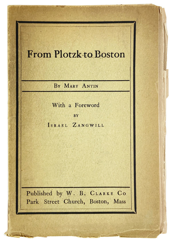 The immigration rights activist Mary Antin's first work, autobiographical juvenilia written when she was just eleven-years-old and recently arrived in Boston from her native Plotzk in present-day Belarus. A laid in promotional leaflet describes her as a "little Yiddish maid" who translated this work into masterful English when she was thirteen and had assimilated to her adopted country.