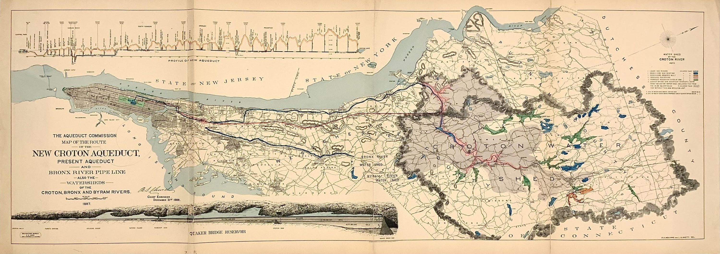 New York: Aqueduct Commission, N.Y., 1887. unbound. Map. Hand-colored lithograph. 37.5 x 13.5 inches.