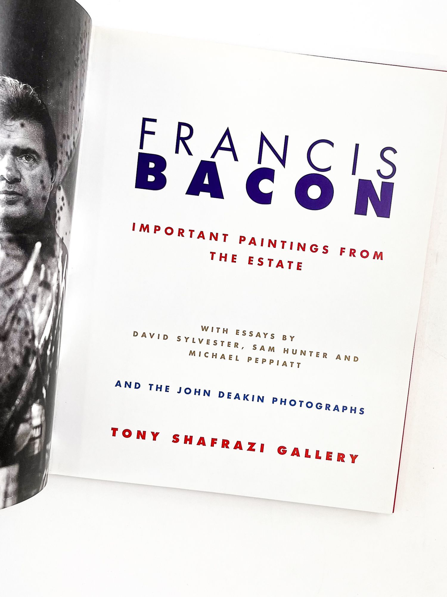 (New York): Tony Shafrazi Gallery, 1998. Fine in fine jacket.. First edition of this companion to the first ever exhibition of paintings from Bacon's estate. 11.75'' x 9.5''. Original purple cloth, gilt lettered on front board and spine. In original color pictorial jacket with no price (as issued). Photographic endpapers. Illustrated throughout in color and black and white. 92 pages. Fresh.