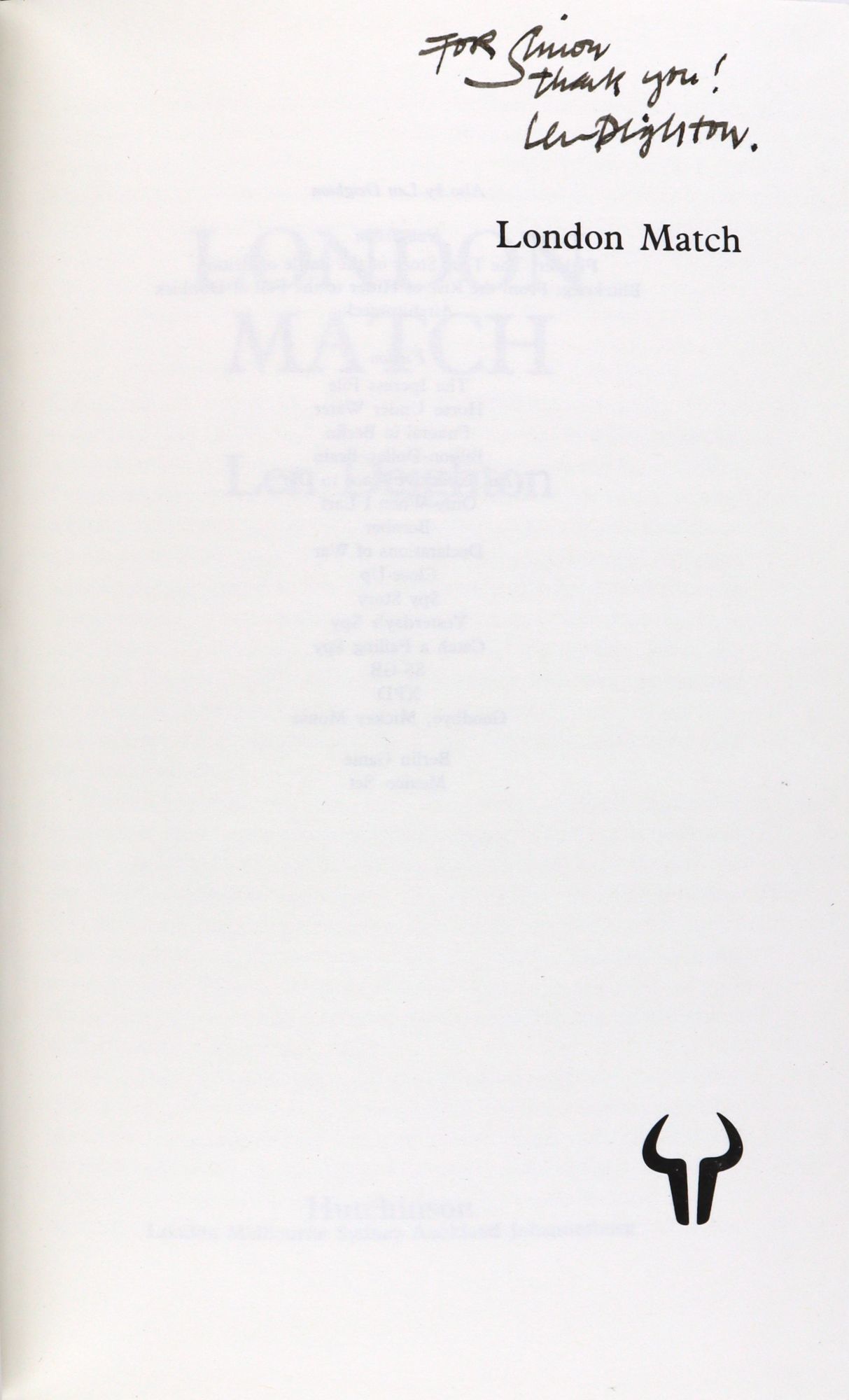 Signed by the author on half title with inscription "For Simon, thank you! Len Deighton." Concluding book in Deighton's Game, Set, Match trilogy, preceded by Berlin Game and Mexico Set. The trilogy was adapted as a 1988 ITV serial starring Ian Holm and Mel Martin.