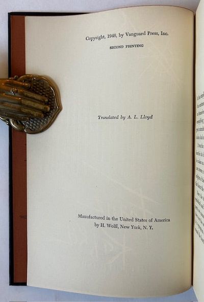 The Vanguard Press, Inc, 1946. Pictorial boards. Near Fine/Very Good. Leslie Sherman. A very presentable copy of the 1946 stated 2nd American printing, translated from its original German by A.L. Lloyd. Solid and VG+ to Near Fine in a bright, price-intact ($2.75), VG dustjacket, with very light chipping and creasin --and several tiny closed tears-- along the panel edges. Octavo, nicely illustrated by Leslie Sherman.