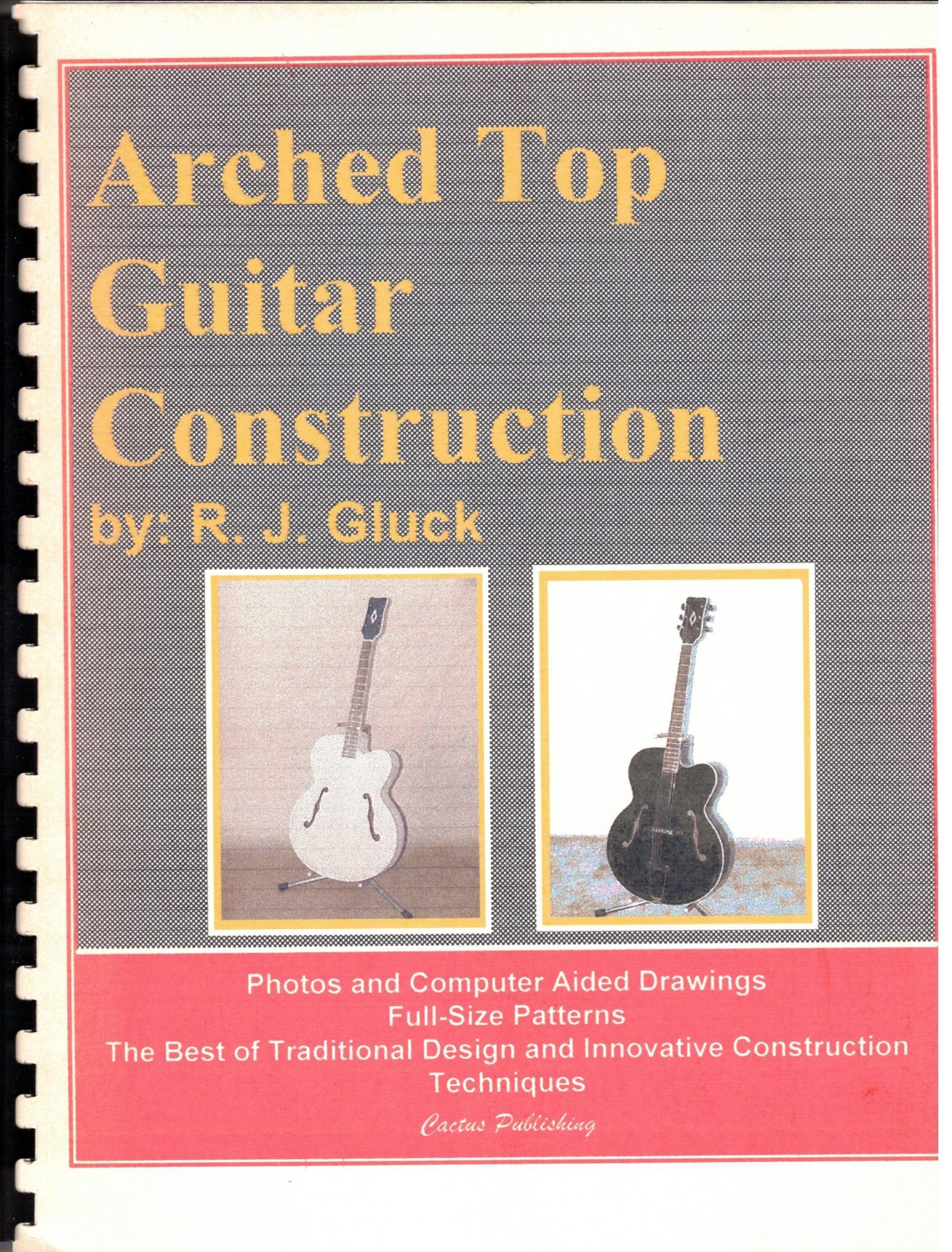 Phoenix, AZ: Cactus Publishing, 1994. First edition. Spiral Bound. Near Fine. 90pp. Quarto [28 cm] Printed wraps with a black plastic spiral binding. Tradition and innovation come together in this book by long-time guitar builder Bob Gluck. Not only will you learn about many of the traditions that are associated with the arched top guitar, but you will learn some innovative ways of creating a guitar that will stand the test of time. Most of the top commercial arched top guitar builders use many of the methods described in this book.