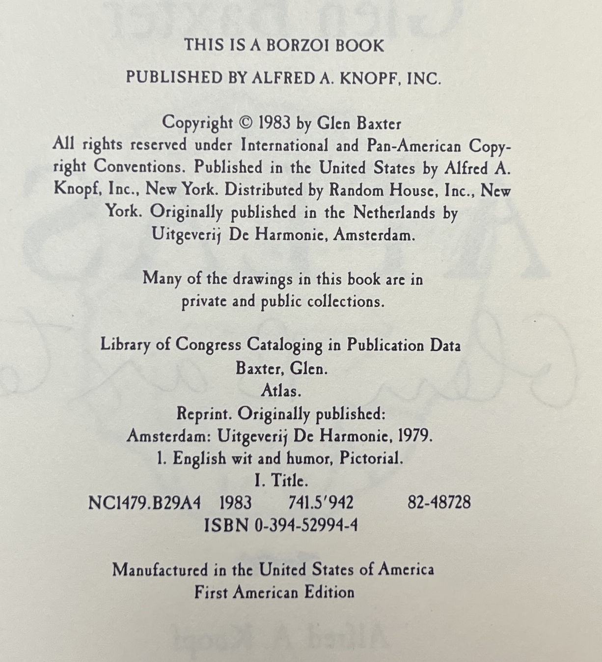 New York: Alfred A. Knopf, 1983. First Edition. Hardcover. Very Good. Signed by Baxter on the title page. Very Good. Glossy orange laminated boards. Square and firmly bound, a few pages with dampstains on the top edge, clean otherwise. The first U.S. edition of the first book of the beloved English artist.