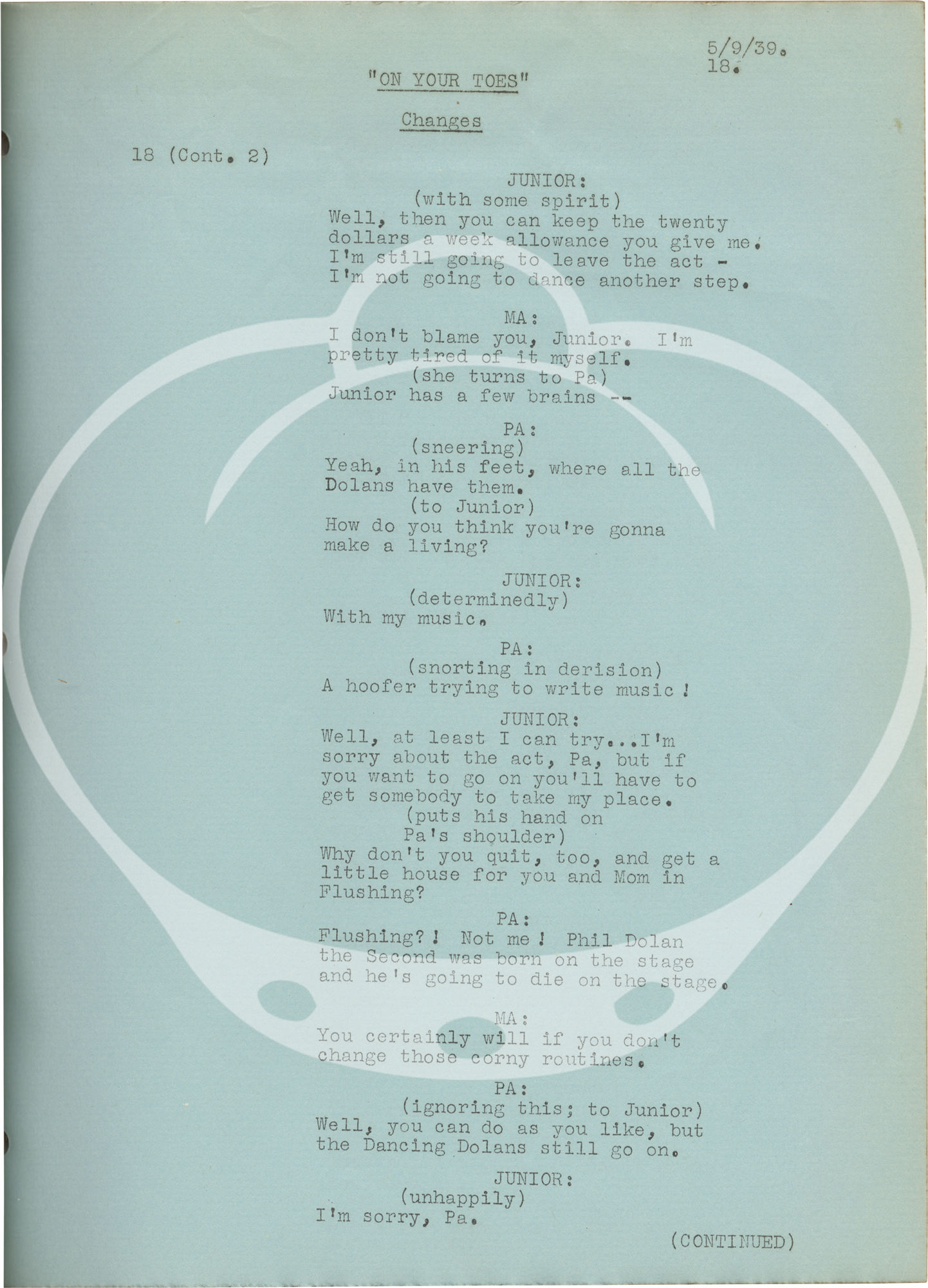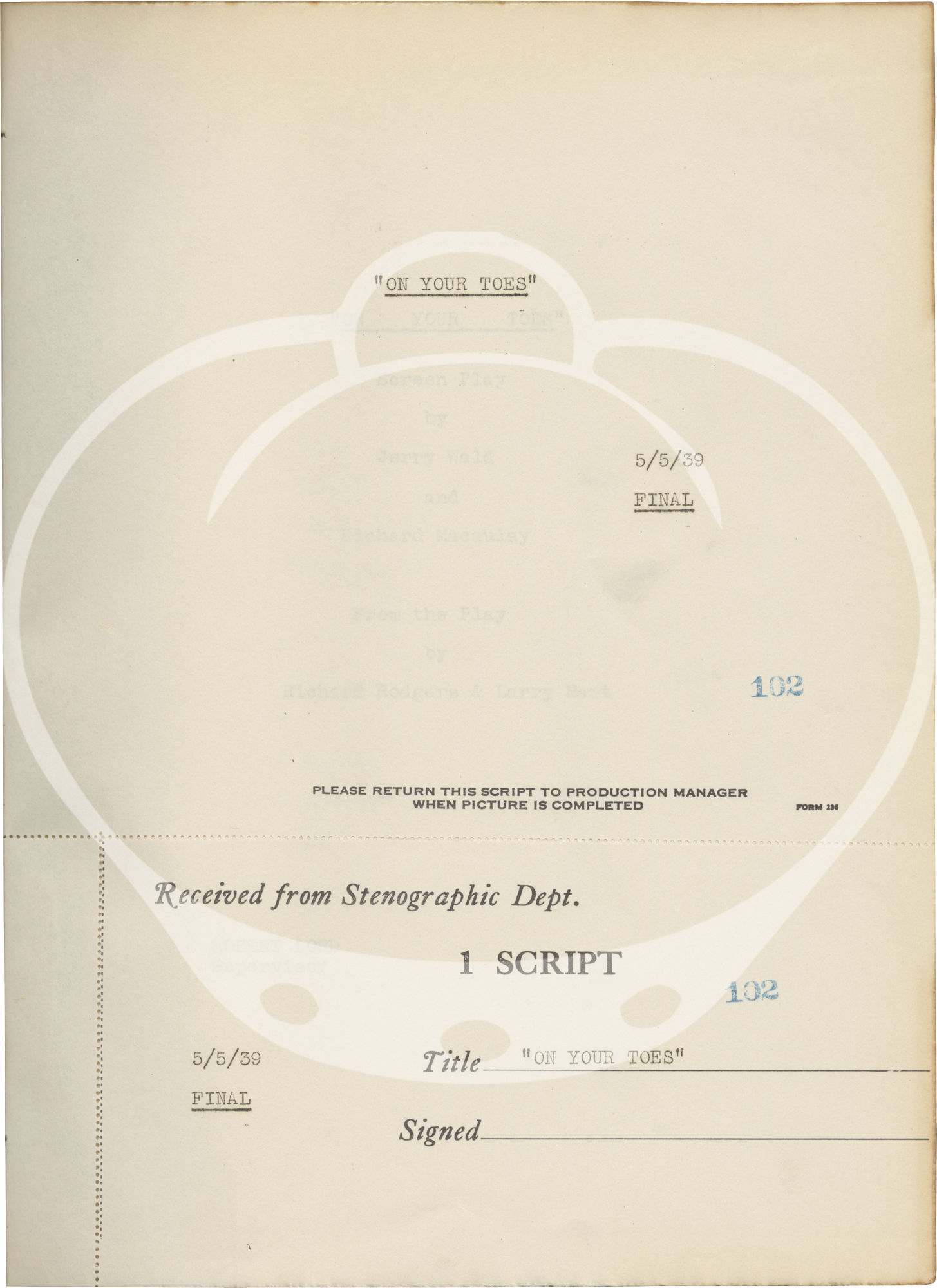 On Your Toes (Original screenplay for the 1939 film, presentation copy belonging to screenwriter Jerry Wald)