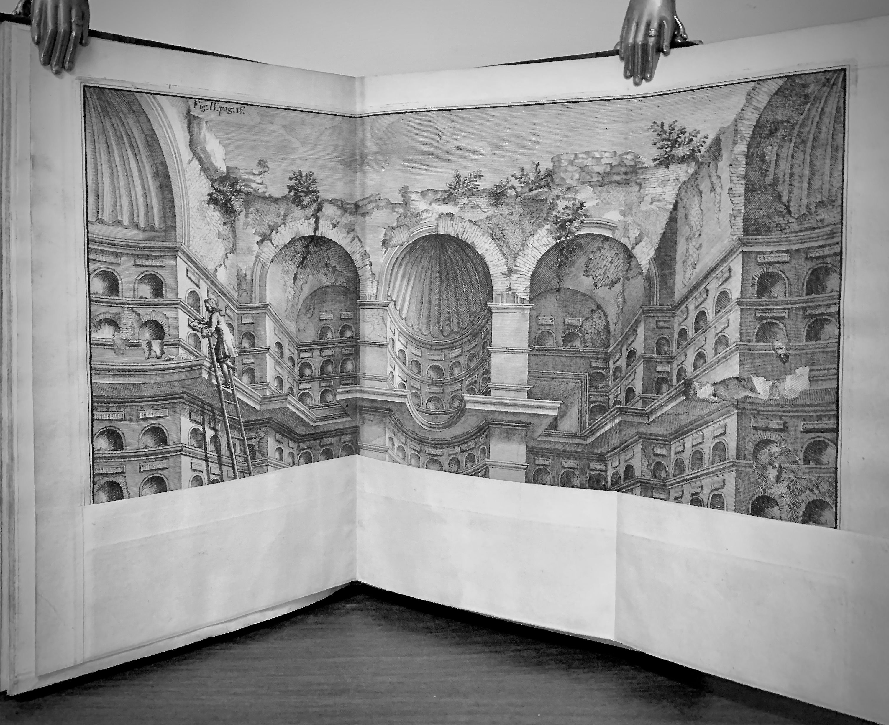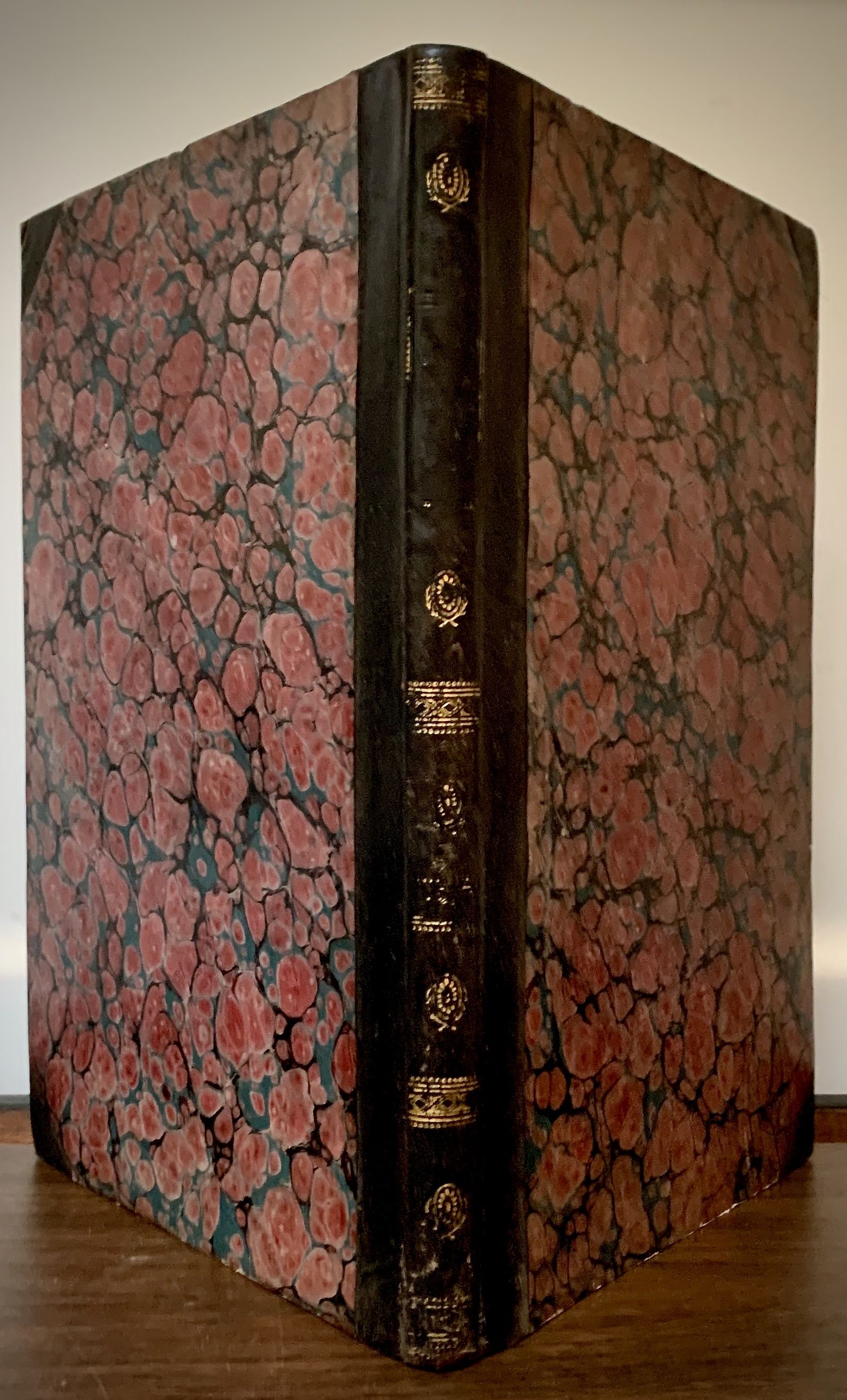 Roma: Giovanni Maria Salvioni, 1727. First edition. leather_bound. 19th century three quarter calf and marbled boards. Very good. (8) 87 pages. 35 x 24 cm. Seven copper engraved plates, six are fold-outs, title page in red and black with engraved vignette. A study of funerary inscriptions of slaves, freedmen, and other officials in the household of the Roman Emperor Augustus excavated on the Appian Way, with plates engraved by Buonamici after Rossi. The author, a philosopher and scientist worked for the curia of three popes, including being camiere d'honore of Clement XI, librarian to Cardinal Ottoboni (later Pope Alexander VIII). Extensive index. BRUNET, Vol.I, p.847. CICOGNARA 3617. OLSCHKI 16462. Armorial bookplate, some intermittent internal toning, binding tight and firm.