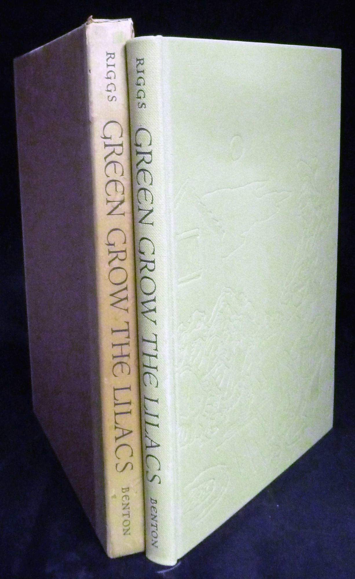 Norman: Limited Editions Club, 1954. Hardcover. Orig. tan cloth illustrated in blind with glassine overwrapper. Fine in near fine slipcase. Benton, Thomas Hart. 162 pages. 30.5 x 23.5 cm. Black and white lithographs by Thomas Hart Benton. Introduction by Brooks Atkinson. Book design by Will Ransom. This work is the original play upon which the musical "Oklahoma" was based. Limited edition, copy 1131 of 1500 signed by Benton. NEWMAN & WICHE 248. Crisp, bright copy.