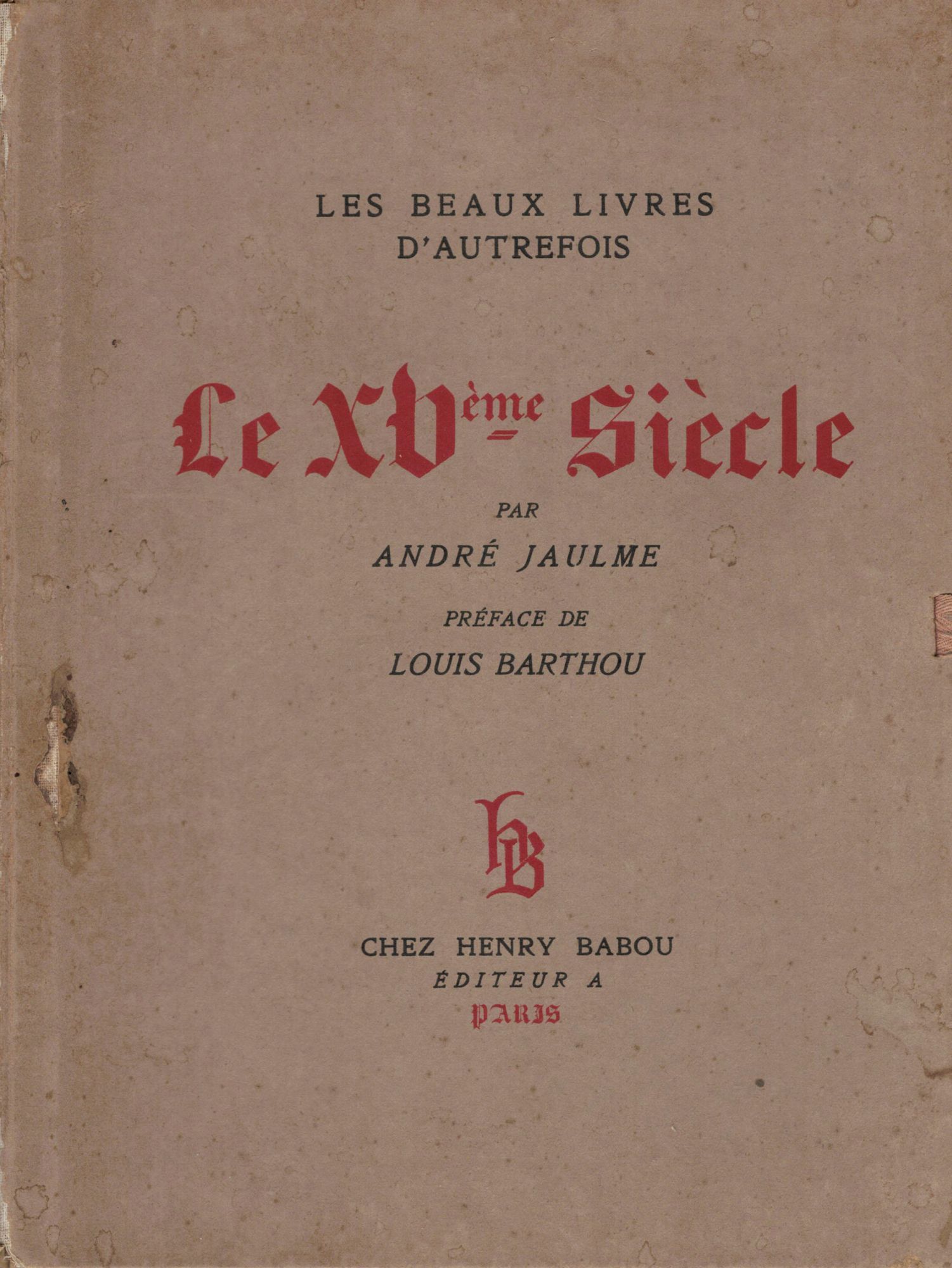 Paris: Henry Babou, 1929. First edition. Hardcover. Orig. board portfolio printed in red and black with cloth ties. Very good. 26 x 20 cm, 36 pages in text, forty plates. Preface by Louis Barthou. A review of early printing and the great books produced with movable type. Limited edition, copy 858 of 1150. Contents loose as issued and unopened, backstrip nicked at extremities, small blemish front cover joint, plates and text very fresh and clean.