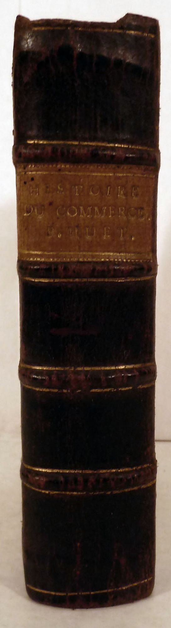 Paris & Brussels: Antoine-Urbain Coustelier & Jean Leonard, 1716. Second edition. leather_bound. Contemporary calf backed boards, tan leather spine label printed in gilt. Very good. 446, (50) Index. 16 x 10.5. [a8-b4,A-Hh8]. Churchman, scholar, a tutor to the Dauphin in 1670, elected to the Academie francais in 1674, Huet owed his reputation the immense number of his writings. This work, a survey of the maritime history of the ancient Mediterranean, the shipping routes taken, also adumbrates the commercial negotiations between the trade partners. Includes material related to the Americas. ALDEN & LANDIS 716/70. KRESS 299. Firm, tight, clean copy; library stamp paste-down front endpaper and title page, raised bands, backstrip head chipped. Blue bookstamp of Katedral Skolans Bibliotek Lund.
