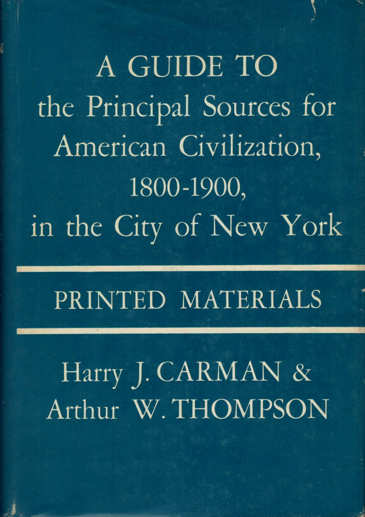 A Guide to the Principal Sources for American Civilization,1800-1900, in the City of New York: Printed Materials