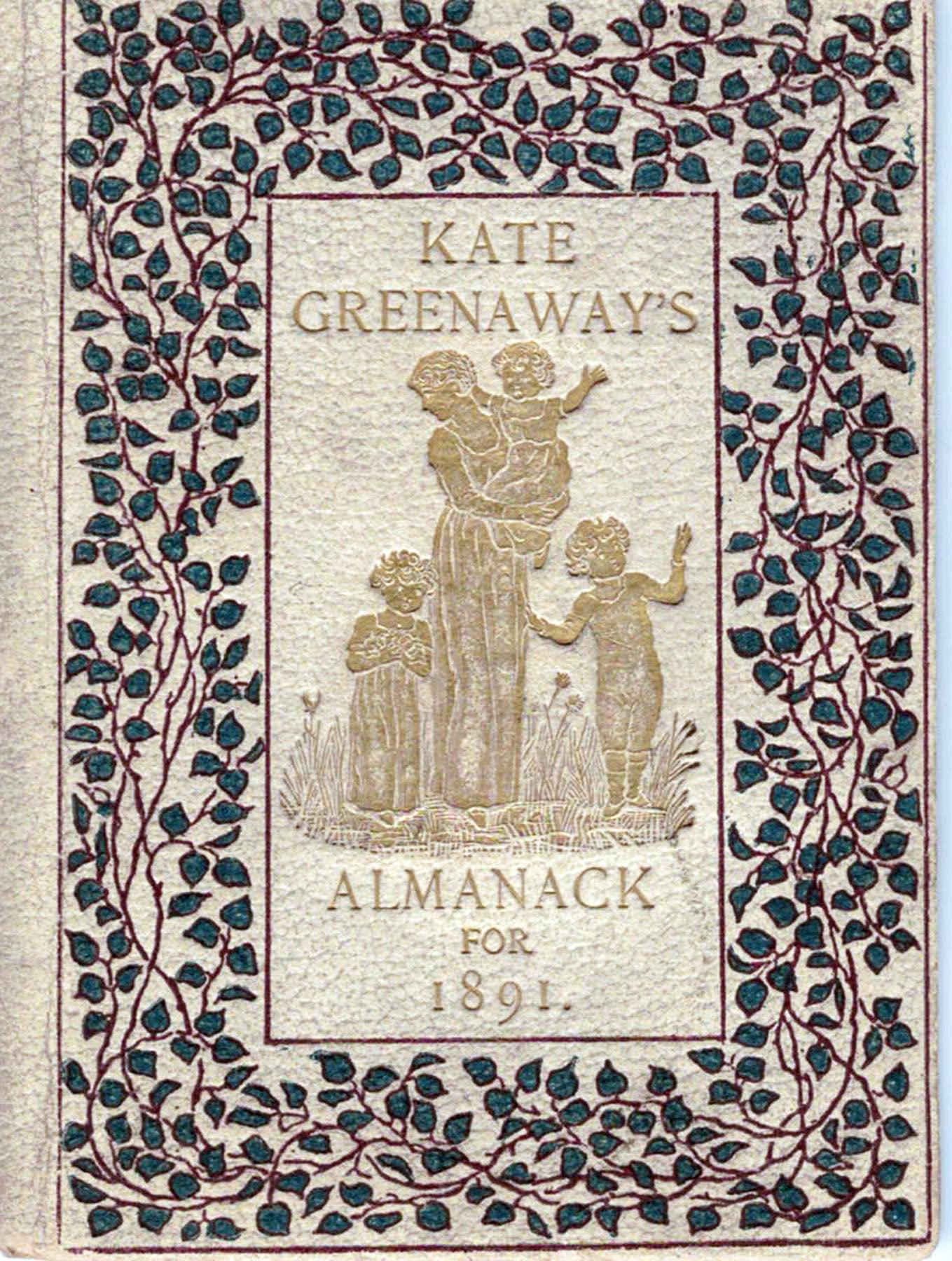 London: George Routledge & Sons, 1890. First edition. leather_bound. Orig. white leather lettered and decorated in gilt. Aeg. Near fine. Unpaginated, 12 leaves. 10 x 7 1/2 cm. Twenty-two color illustrations printed by Edmund Evans. Greenaway notes, "I do not know why I cared most to draw children in old-fashioned dresses, except that old-fashioned things were always very pleasing to me. GORDON N. RAY, p.157. Bright, clean copy. Front cover depicts young lady holding an infant in her arms with two young children at either side within a floral leaf border.
