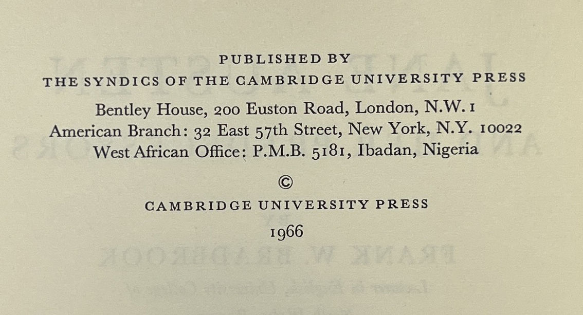 New York: Cambridge University Press, 1966. First Edition. Hardcover. Very Good/Near Fine. Good in a Near Fine jacket, unclipped ($5.95), faintly rubbed, a stain at the front panel. Green cloth, tidemark at the head of the spine and top edge of the back board. Square and firmly bound, clean internally. A work of Austen criticism that studies the influences on Austen's views on art and life.