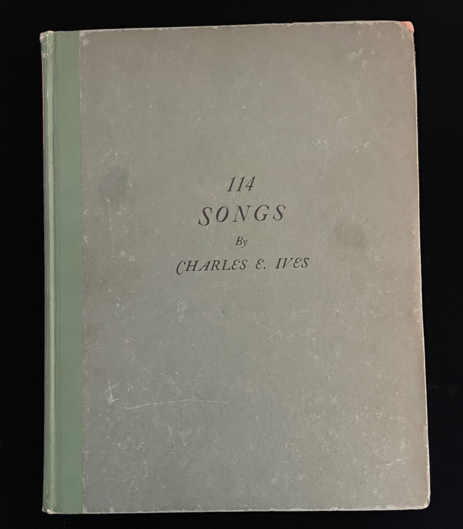 Redding CT: C. E. Ives, 1922. 1st Edition. Hardcover. VG+. The rare first edition, first printing of 114 SONGS, 4to green cloth spine over green paper-backed boards, with title in black. (1) (4) 259 (5). Paper label on spine slightly chipped around edges. Internals fine. With the bookplate of famous bibliophiles Mr. and Mrs. S. Berkman.