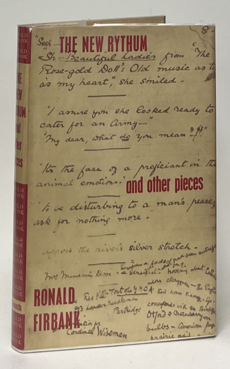 London: Gerald Duckworth & Co. Ltd, 1962. First Edition. Hardcover. Fine/Fine. Introduction by Alan Harris. Fine in a Fine jacket, unclipped (21s. net), faintly rubbed. Quarter red cloth with pictorial paper on the boards. Square and firmly bound with a red top stain, clean internally. An addition of sorts to The Complete Ronald Firbank, here publishing for the first time seven completed chapters of a novel about New York, a typescript of Lady Appledore's Mesalliance, A Study in Temperament, extracts from unpublished works, some manuscript facsimiles and surprising photographs.