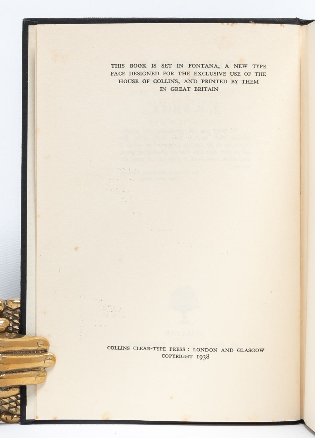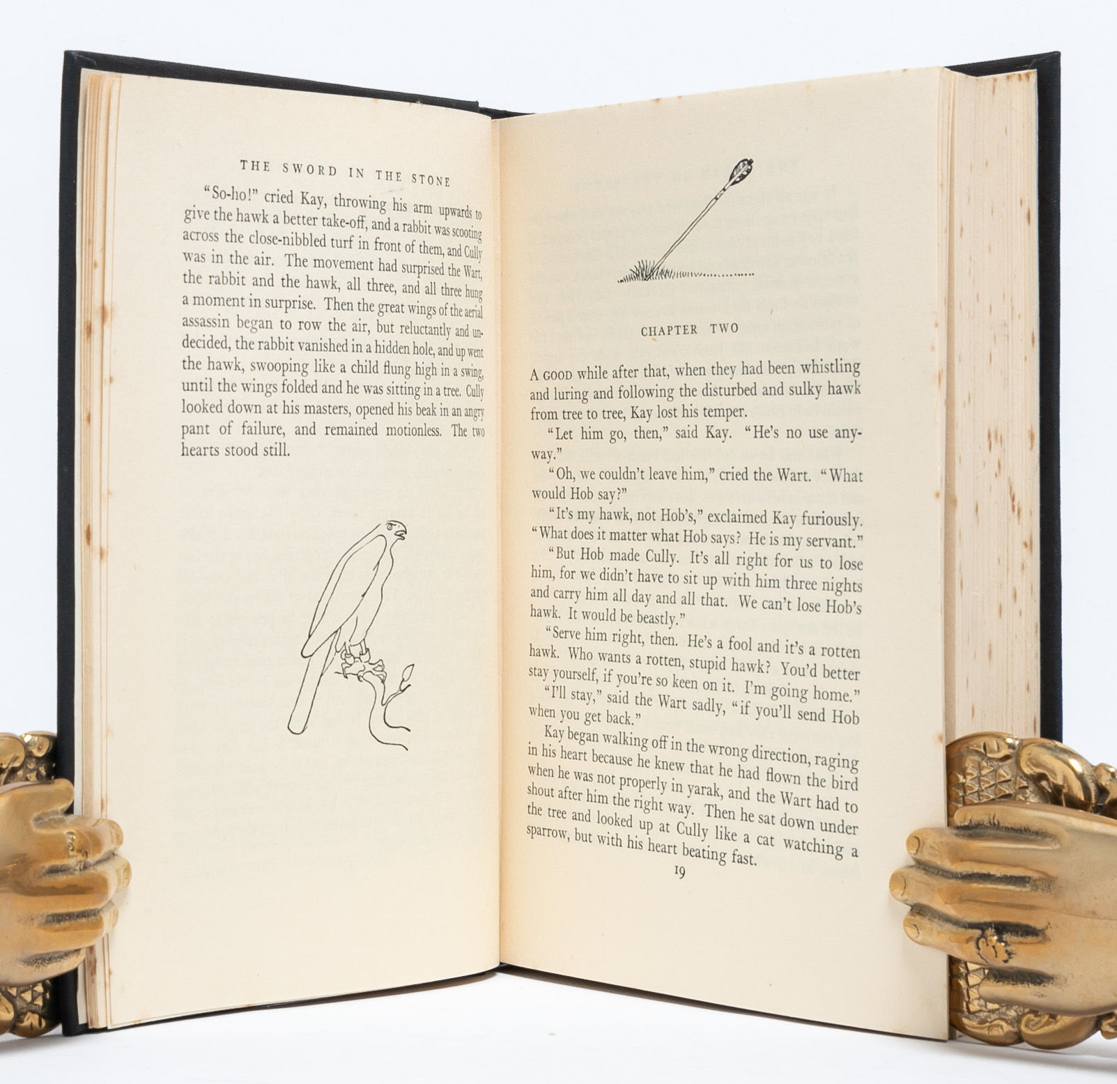 A beautiful copy of White's most famous book, his modern interpretation of the Arthurian legend (based on Malory's Le Morte D'Arthur). Adapting Arthurian legend for modern readers, White provided Arthuriana fans with a backstory on the childhood and education of the boy who would become king. Tracing Arthur’s youth and training with Merlin, the novel also put the young hero in contact with other familiar Medieval figures including Robin hood. Basis for the beloved 1962 Disney film of the same name and a classic of modern literature in its own right. “The single finest fantasy novel written in our time, or for that matter ever written, by any conceivable standard must be T.H. White’s” (Carter). Near Fine in Near Fine dust jacket.