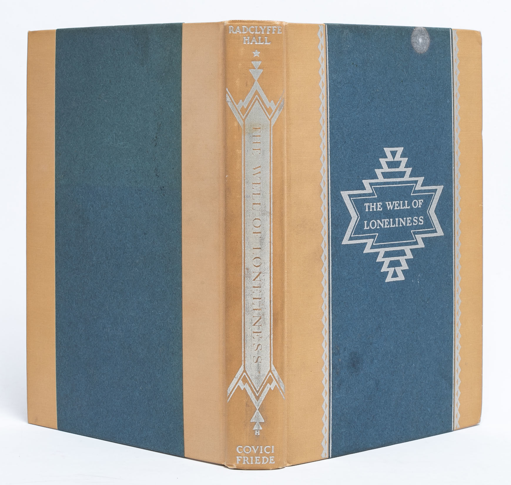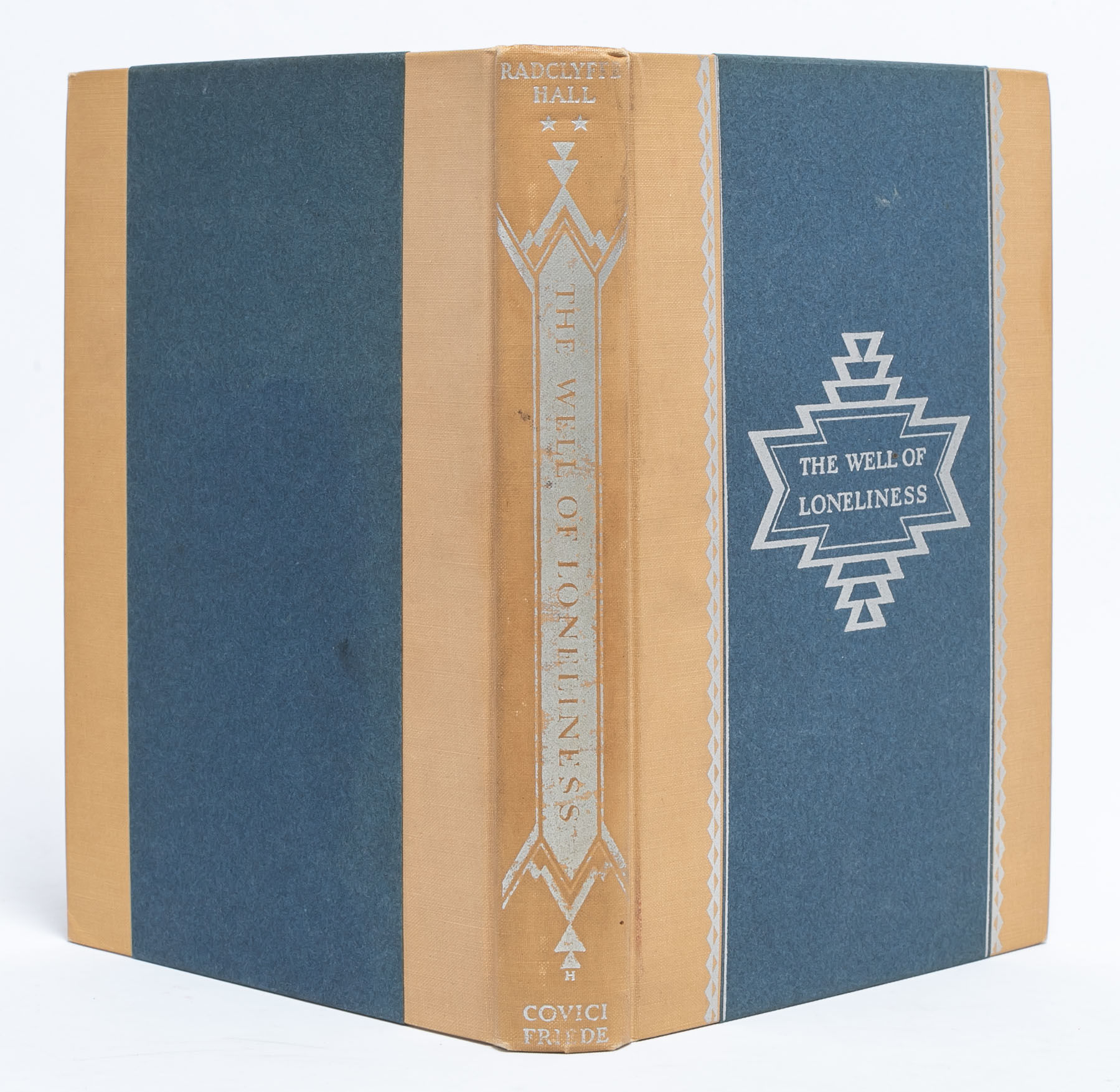 Radclyffe Hall’s The Well of Loneliness is a ground-breaking novel featuring lesbian relationships and gender nonconformity, which argues that homosexuality (called sexual inversion in the book) is natural and that queer people deserve the right to live openly and happily with their chosen partners. The novel follows Stephen Gordon’s life from living in Paris to serving in the ambulance corps during WWI; a journey of self-exploration and a tragic quest for love. Hall engages with both Christianity and developments in Sexology throughout the text to support her argument for equality. Although controversial at its publication (legal hurdles and banning because of its purported “obscene” content), the novel has long been valued for its pioneering portrayal of queer people. Yet, in the decades since its publication, Radclyffe Hall’s prose and narrative choices have been critiqued, especially for perpetuating many of the boundaries it could have pushed against. For contemporary readers, the complicated novel also offers a chance to investigate nuances in the main character’s sexuality and gender identity through our modern framework. Near Fine.