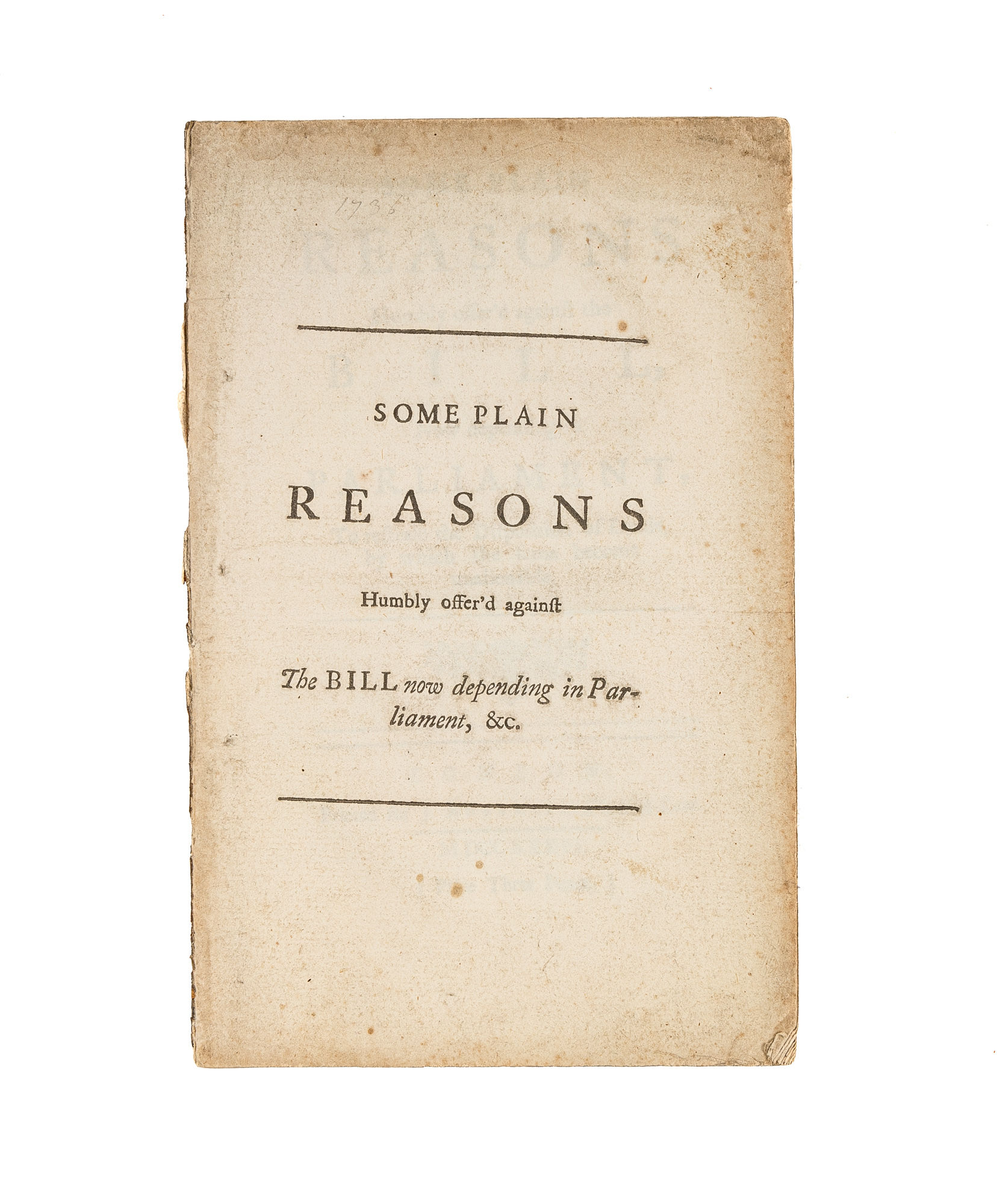 Some Plain Reasons Humbly Offer'd Against the Bill, Now Depending..
